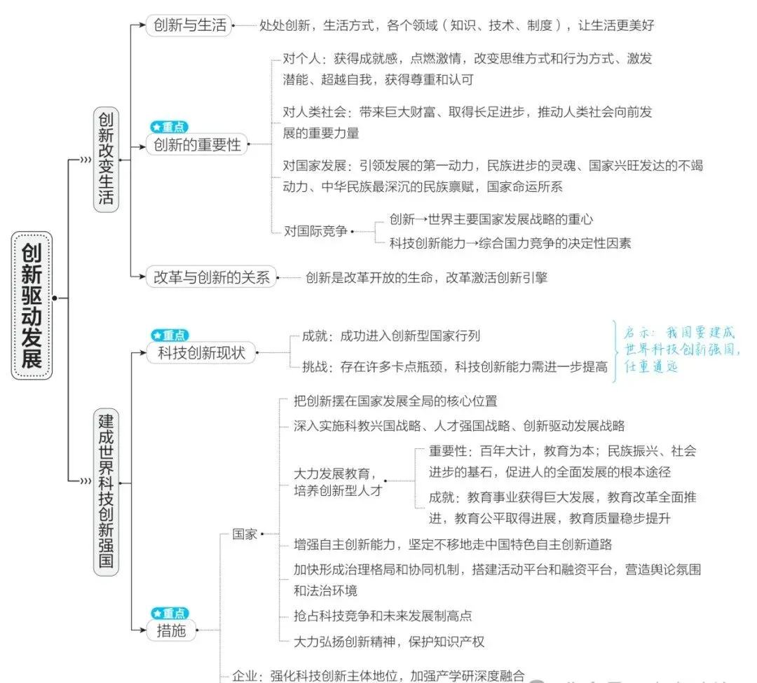 (3)对国家发展:①创新是引领发展的第一动力。②创新是一个民族进步的灵魂,是一个国家兴旺发达的不竭动力,也是中华民族最深沉的民族禀赋。③创新驱动是国家命运所系。