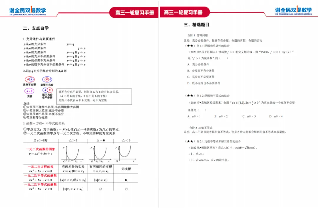 数学高考百日冲刺手册涵盖 13 大专题,从集合逻辑到导数压轴,谢全民 “三大思想四大意识” 贯穿始终。题型按难度分层设计,基础题稳分、中档题提速、压轴题突破,针对数列求和、立体几何空间角、解析几何最值等高频考点,提供具象化思维、等价变换等高效解题方法,附各区期末真题详解,帮你掌握高考命题规律,解题又快又准。