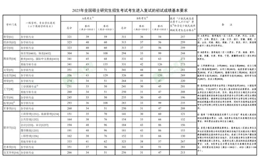 考研国家线是每位考生最关心的核心信息,也是进入复试的基本门槛,包含总分线与单科线双重要求。为此,我们为大家整理了:2021—2025历年考研国家线,各学科门类趋势图&单科分数线(学硕+专硕),2026年各学科国家线预测,供大家参考、规划复试与调剂,祝愿每一位努力的你都能如愿上岸!