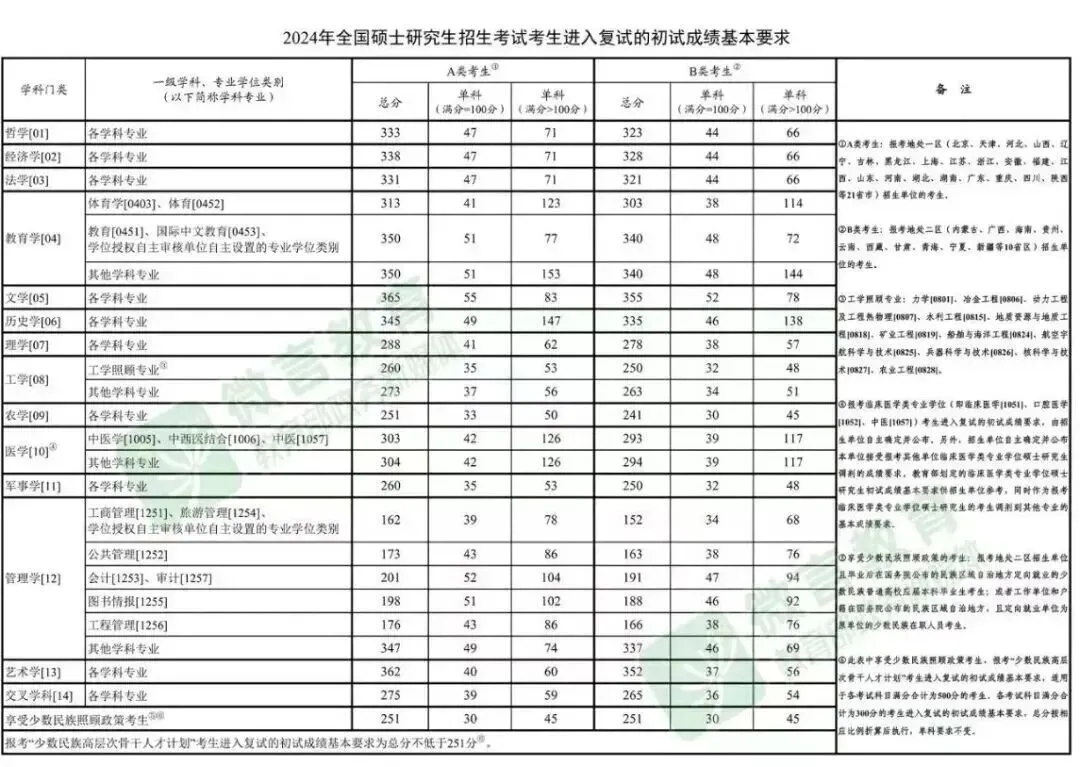 考研国家线总体上分为学术型复试分数线和专业学位类分数线,也就是通常所说的学硕和专硕复试线。国家划定的总分分数线就是在总分方面要求考生须达到的分数要求。