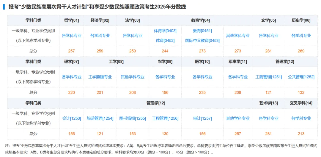国家线-享受照顾政策专业及考生
