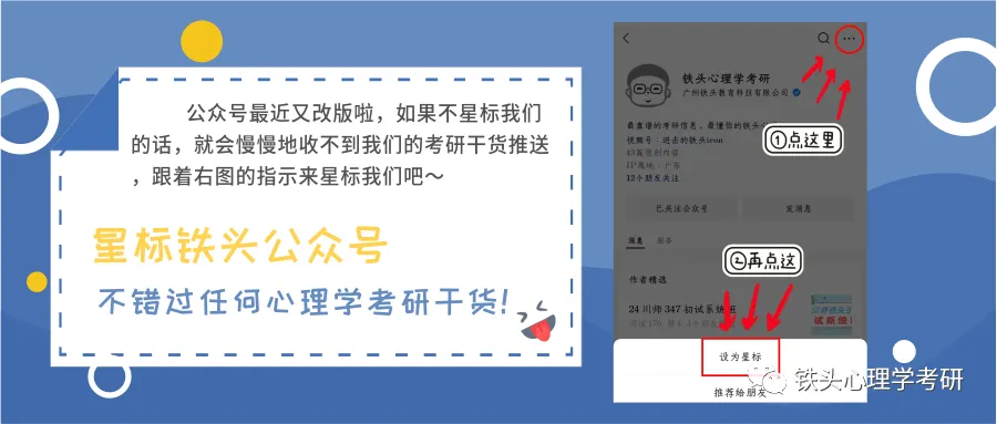 公众号最近又改版啦,如果不星标我们的话,就会慢慢地收不到我们的考研干货推送,跟着下图的指示来星标我们吧~