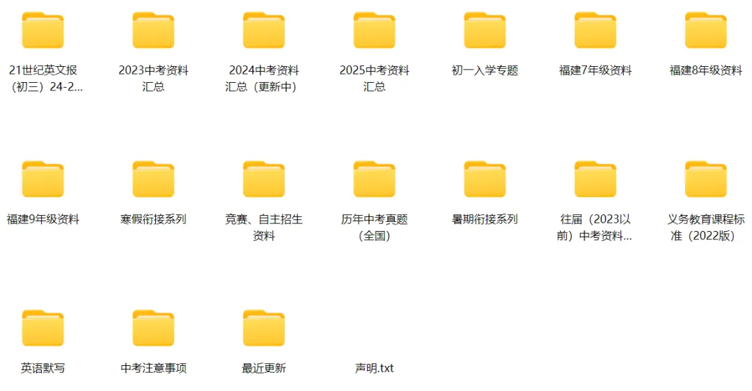 初中试卷资料→各年级对应科目→专题文件夹
