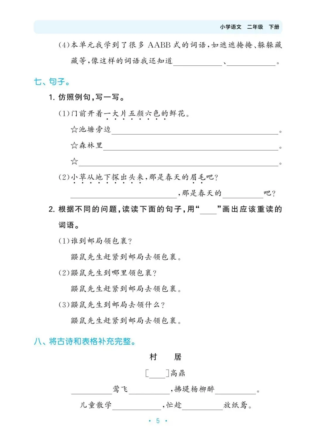 ✅归类复习二下人教语文