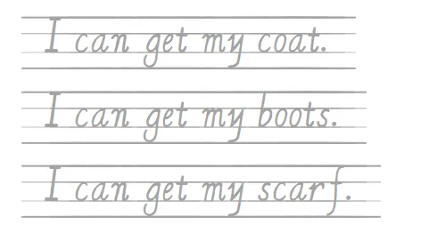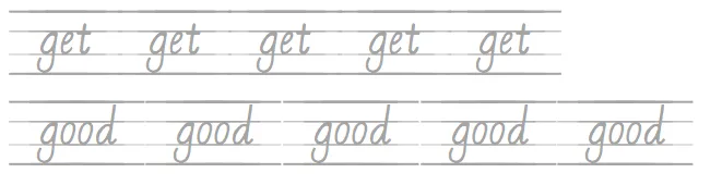 必做:请小朋友们按照正确的书写格式,在英文本上书写下列高频词(每个5遍)注意笔顺和占格哦~