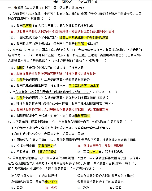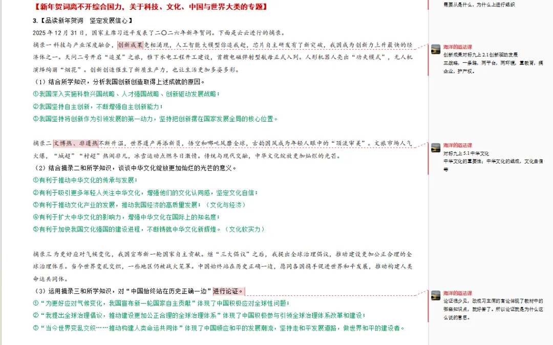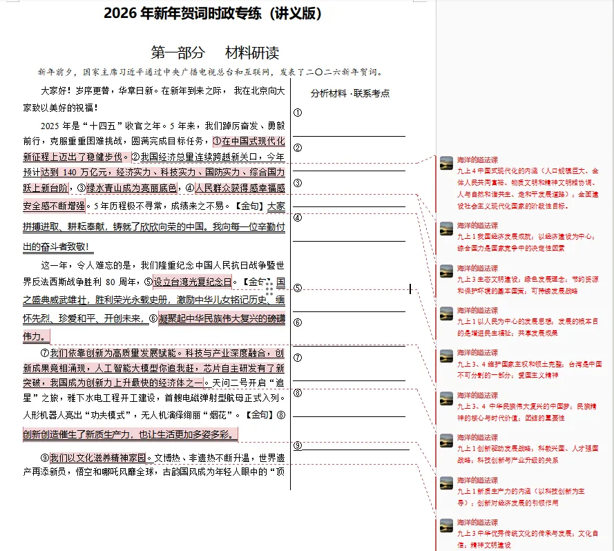 今天我们就一起深入挖掘新年贺词里的“考点密码”。那么,新年贺词中究竟蕴藏着哪些我们必须掌握的考点?又该如何从道德与法治的视角去解读它呢?让我们带着这些问题,正式进入今天的新年贺词时政专题讲解。