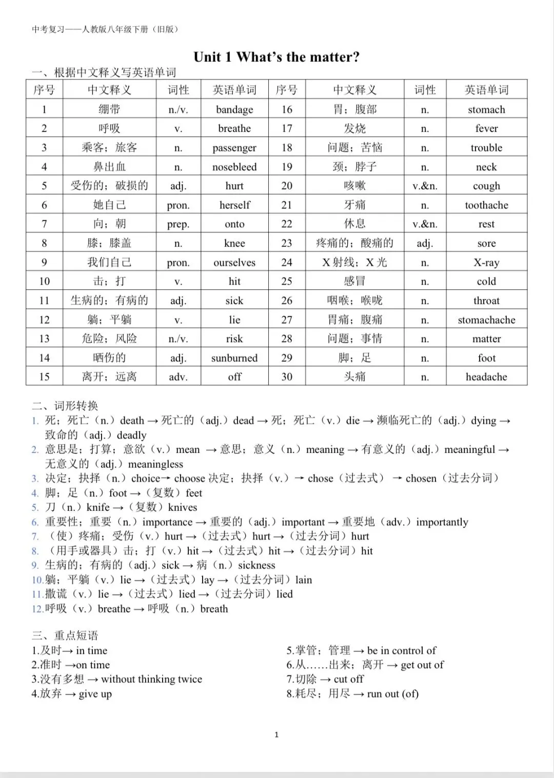 这份专为中考一轮复习打造的旧版八年级下册英语核心复习资料,精准对接中考考纲要求,聚焦八下教材重难点,是一轮复习夯实基础的关键抓手!