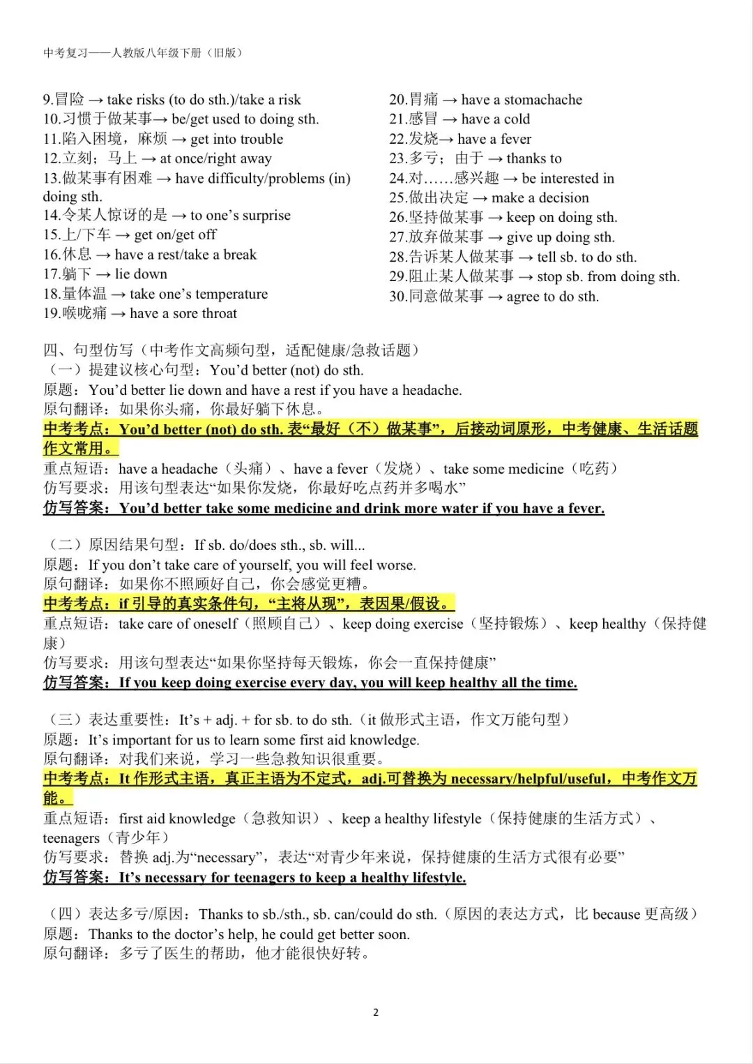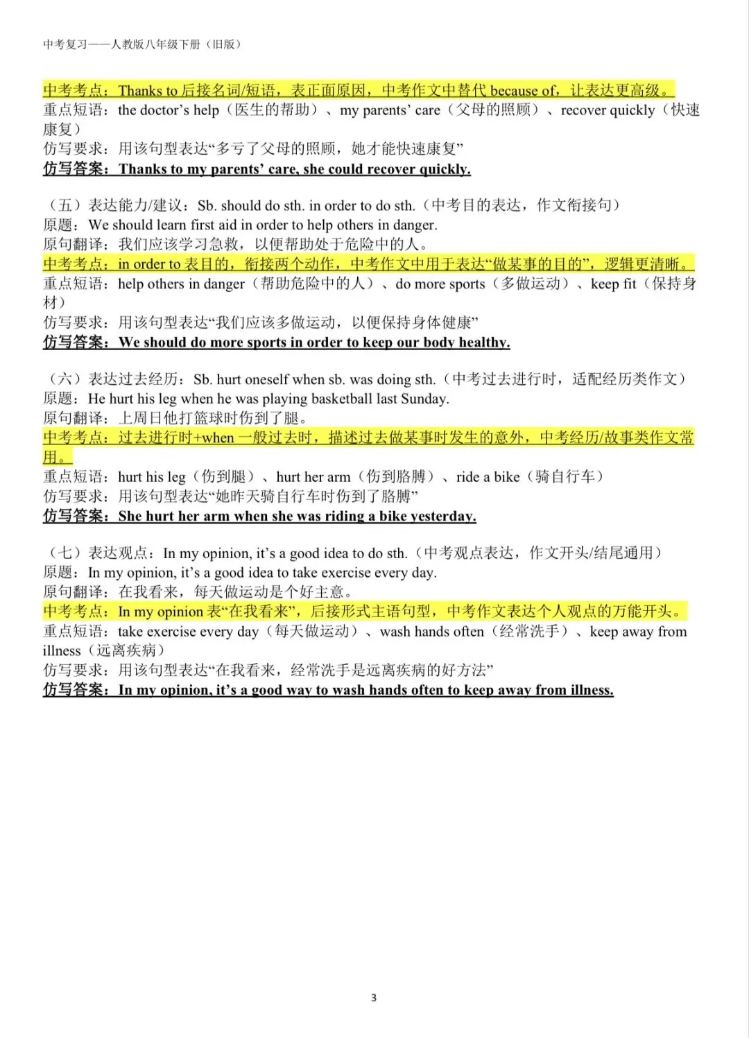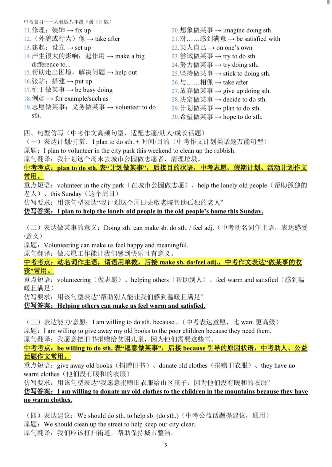 ✅ 覆盖词汇、语法、句型、题型四大板块,适配中考一轮系统复习