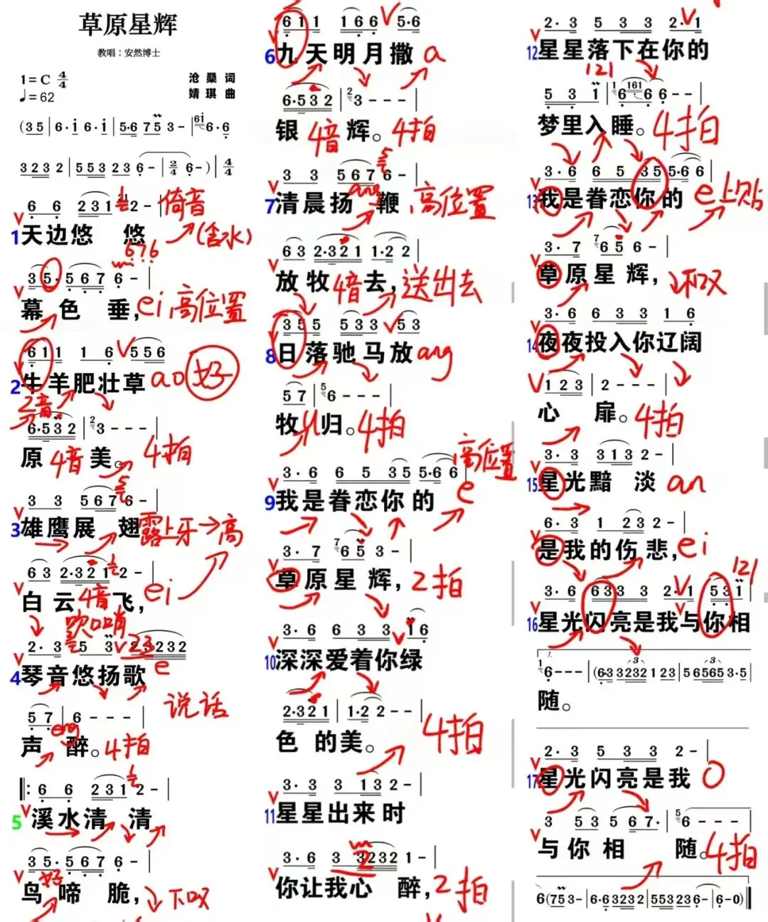 为了方便大家复习歌曲《草原星辉》,我把歌曲的