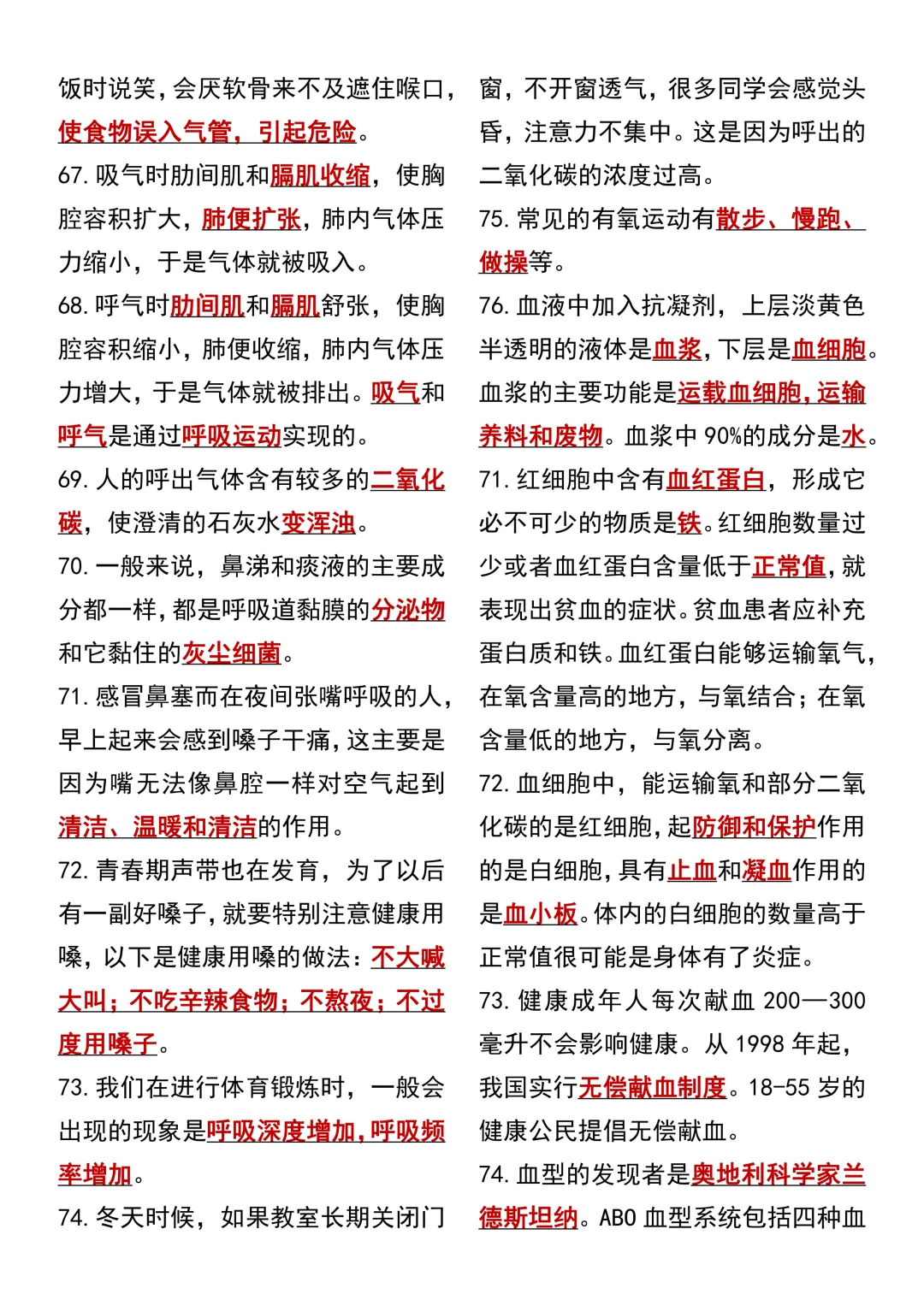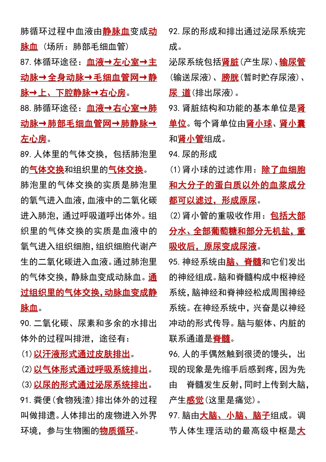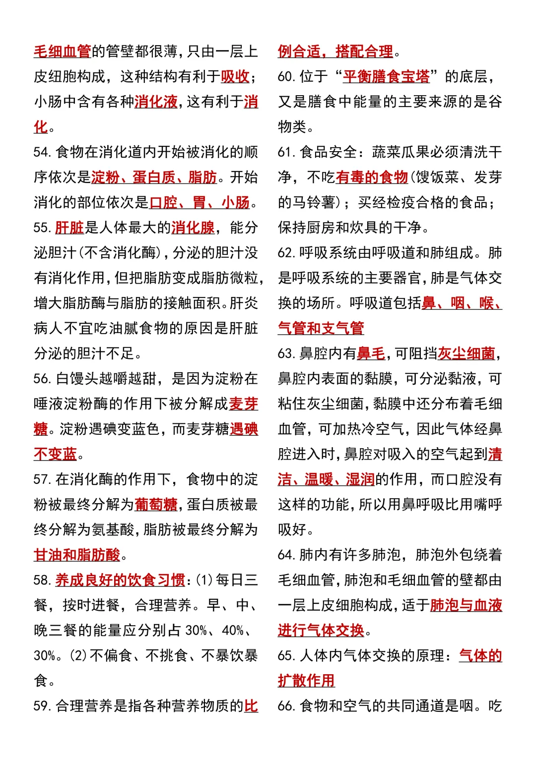七年级下册生物 期中复习重点必考111个考点汇总(通用)!初一下册生物期中考点知识点集锦