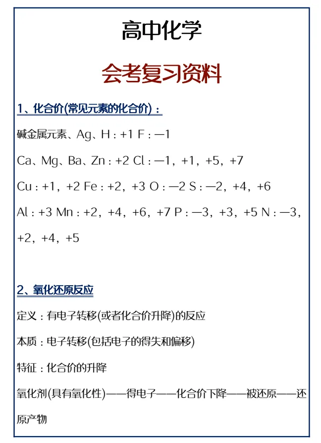 【高中】2026高中化学会考知识点复习资料(可打印)