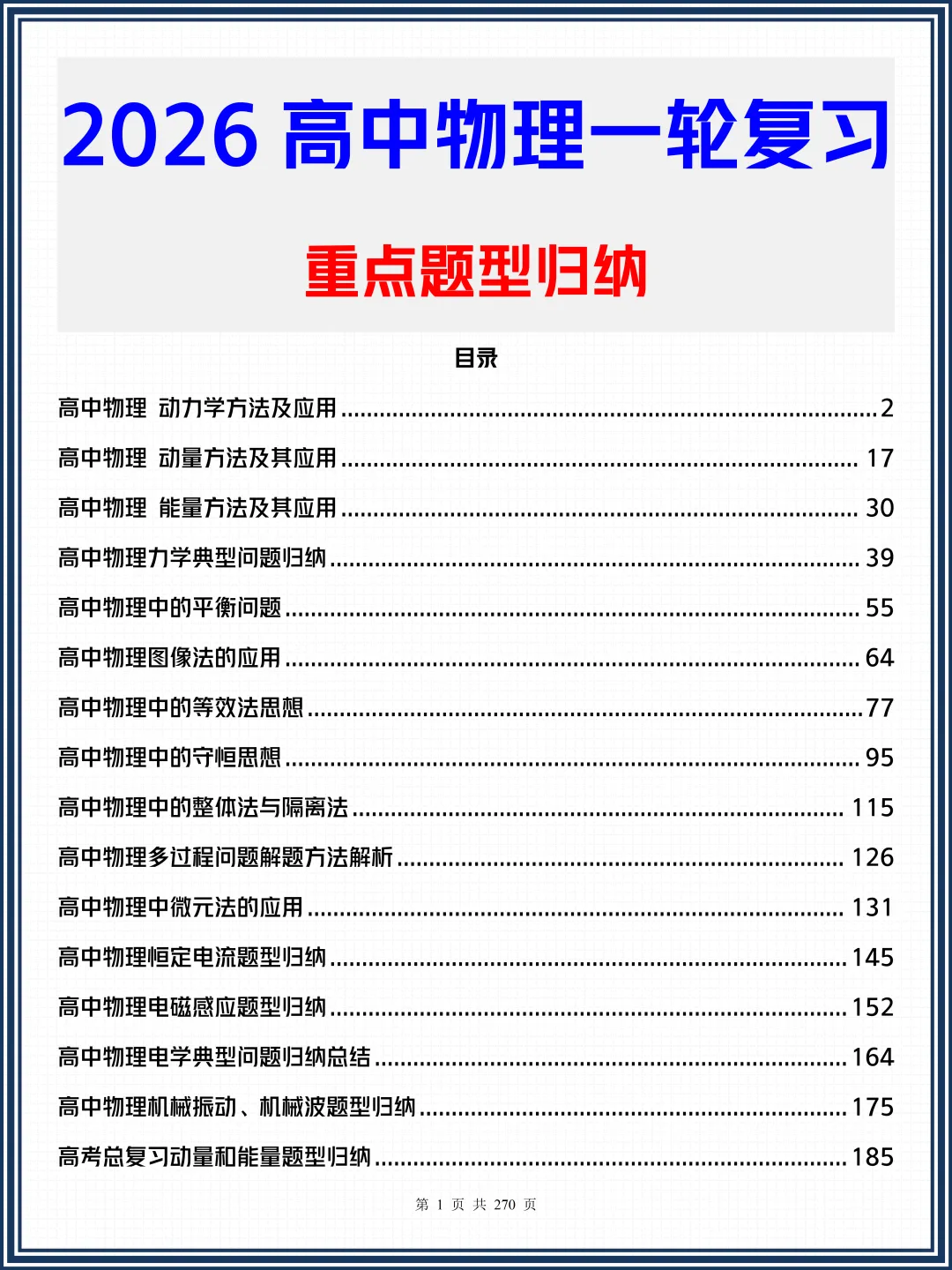 小编整理了一份【最新版高中物理一轮复习重点题型归纳】避免盲目刷题。复习、基础不好,就用这一份‼️