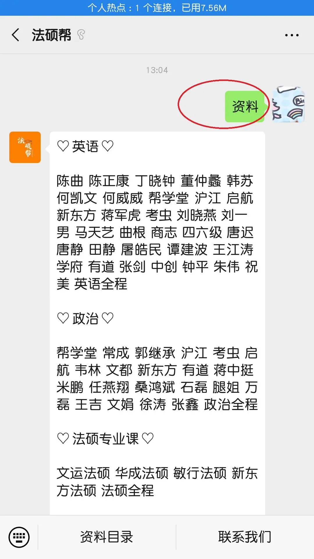 点击主菜单“资料目录”,或者发送“资料”,即可获取资料目录。比如上图的“密训”,在我们资料目录里是没有的,所以无法正确获取。