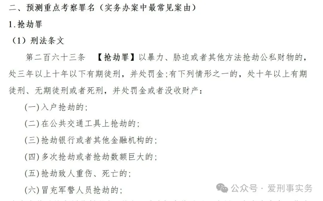 该部分主要介绍了资料整理的方向及新版本资料的变化。刑法分则多达四百多个罪名,在有限时间内,全部复习显然不具可能性亦无必要性。资料围绕实务办案中常见的诈骗、抢劫、盗窃、抢夺、敲诈勒索、集资诈骗、合同诈骗、强奸、职务侵占、贪污、受贿、挪用公款、毒品相关犯罪等四十一个罪名,从法条、理论定义、相关司法解释及会议纪要、构成要件解读四个方面进行整理。其中,对于最高院及地方省高院已经出具量刑指导意见的罪名因其极容易被考察(一方面可以精细化量刑;另一方面日常最常见),故资料进行了全部整理。例如,江苏地区2016年考察盗窃、转化型抢劫,2017年考察毒品犯罪,2018年考察交通肇事罪与故意杀人罪,2020年考察职务犯罪,2022年考察的是职务侵占罪、盗窃罪、抢劫罪、抢夺罪等。这些罪名要么是最常见,要么就是具有详细量刑指导意见。另外,2025年版本的资料进行了相应变化,上述已经详细介绍过,不再赘述。