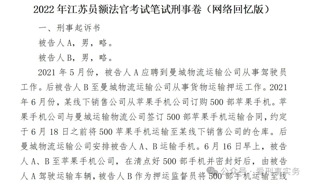 对于考察判决书撰写的地区,此处,收录了江苏省2016年考试的真题及命题组给予的考点设置及答案的解析,甚至还有优秀的答卷。该部分内容一是可以借鉴优秀裁判文书的写法,二是了解考点设计思路,制定针对性复习策略,三是可以进行自己的模拟考试,以便测试时间是否够用以及测试自己记忆的判决书撰写要素是否齐全。另外,因考虑2016年比较久远,还收录了一份2022年江苏地区考察的真题,但为网络个人回忆版,非官方发布,同时无参考样卷,供大家复习参考。
