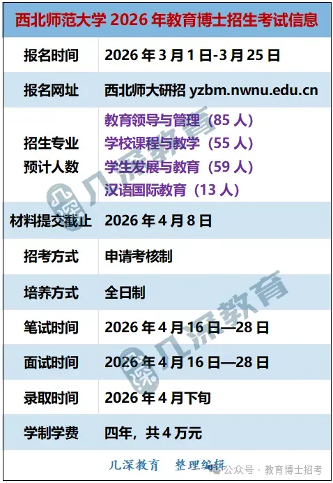 西北师范大学教育科学学院2026年教育博士研究生招生选拔实施细则