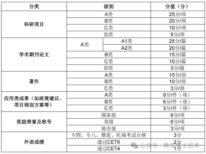 业绩分:满足基础条件后,报考考生其他业绩成果依据以下标准赋分,满分40分,只将考生本人独立或作为第一完成人的成果进行计分,同一成果“就高加分”,加满为止。