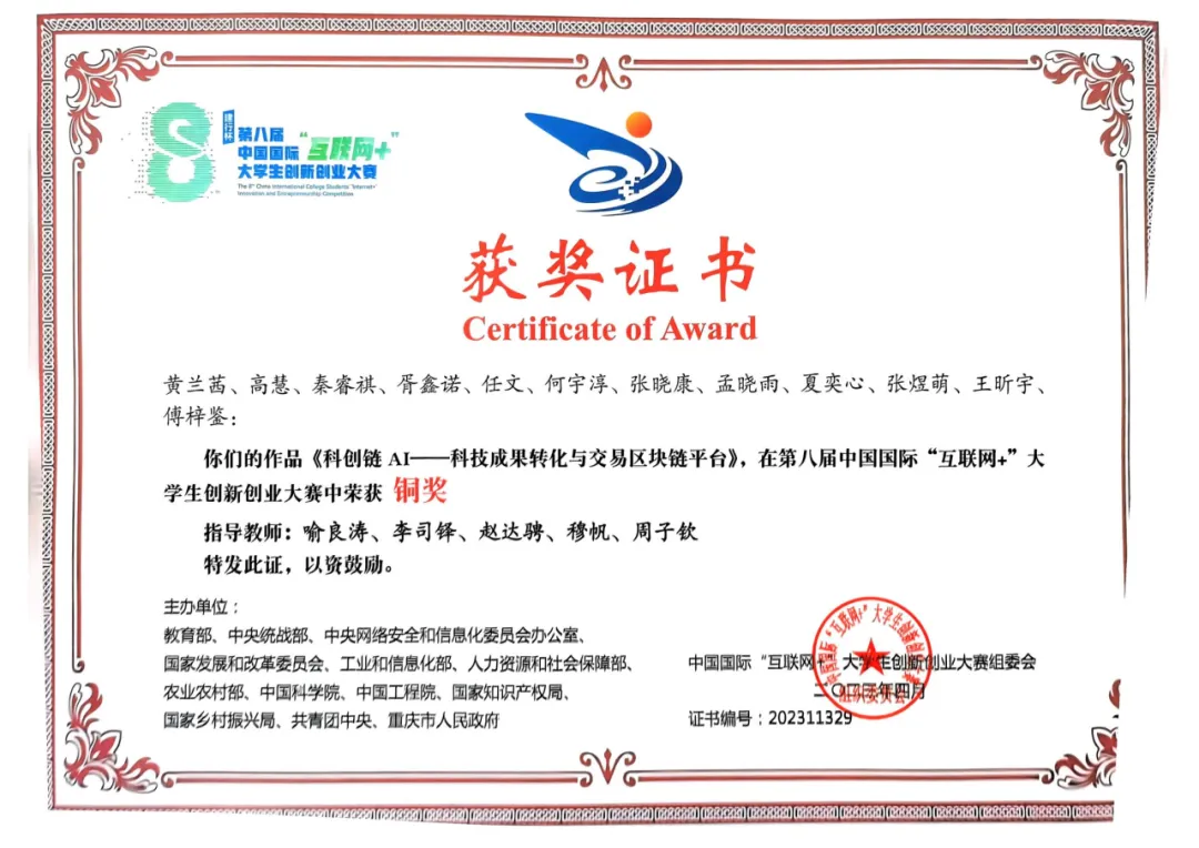 在“互联网+”中,他们的项目提出了“科创链AI”致力于科创协同创新垂直细分领域的威客模式,通过区块链应用和威客模式创新解决了科技协同创新“公开专利”中的“知识产权界定和权益保护”难题。