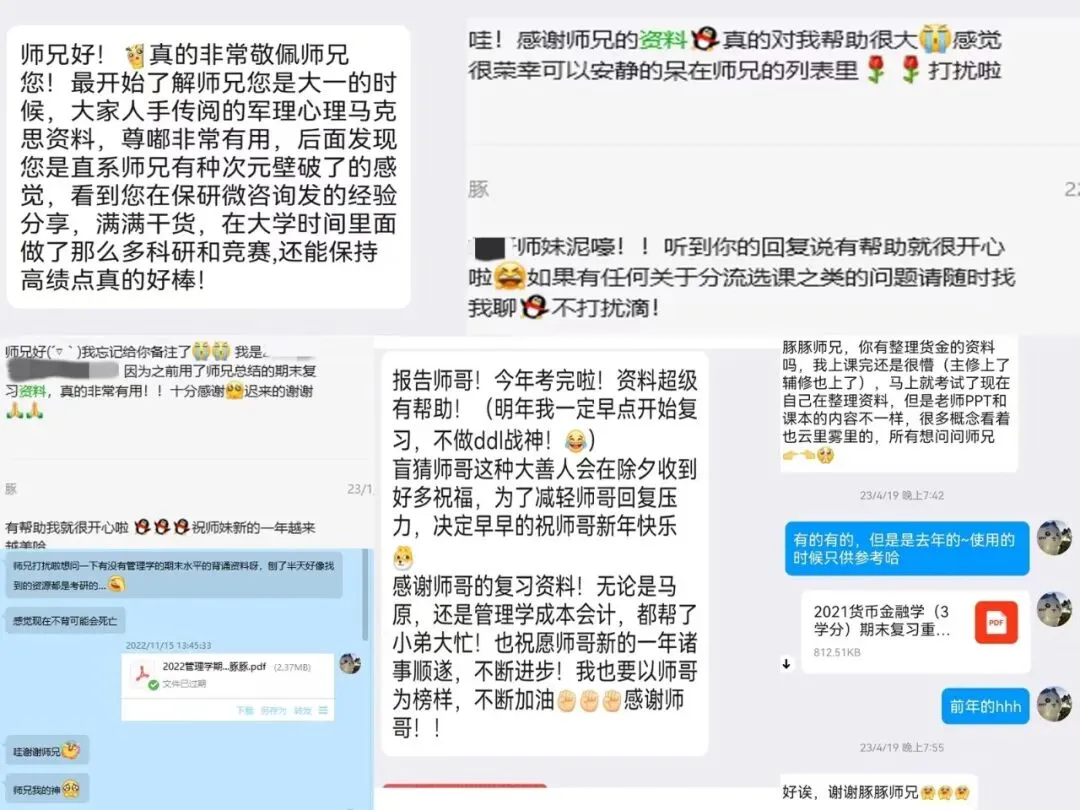 当资料广为传播时,在图书馆看到素不相识的同学正在认真地背记自己整理的资料时,我就很开心。并且借助资料这一媒介,我走出了自己的舒适圈,认识了很多新朋友。