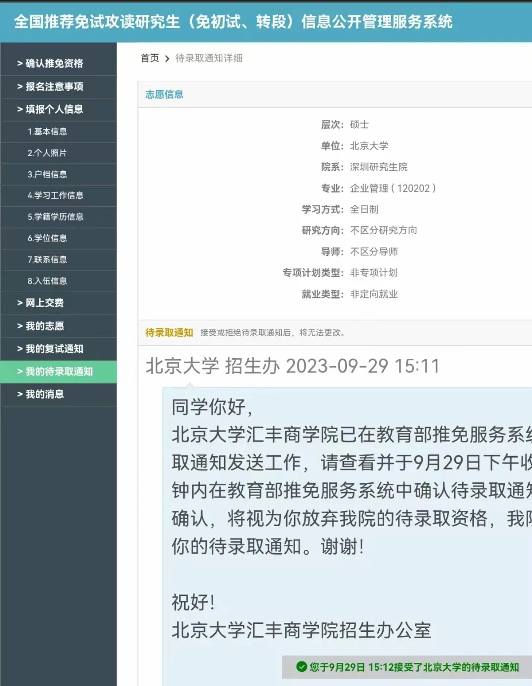 推免至北京大学