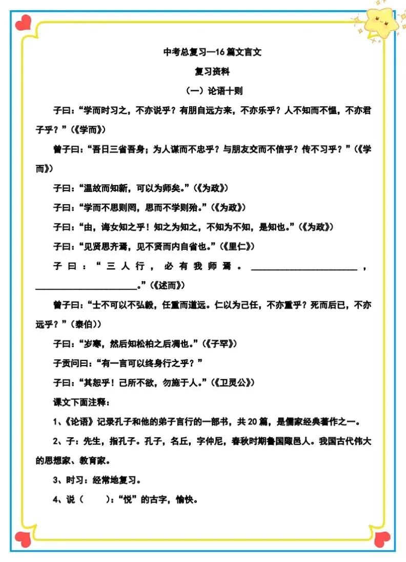 初中语文|16篇文言文复习资料 含答案 电子版可打印