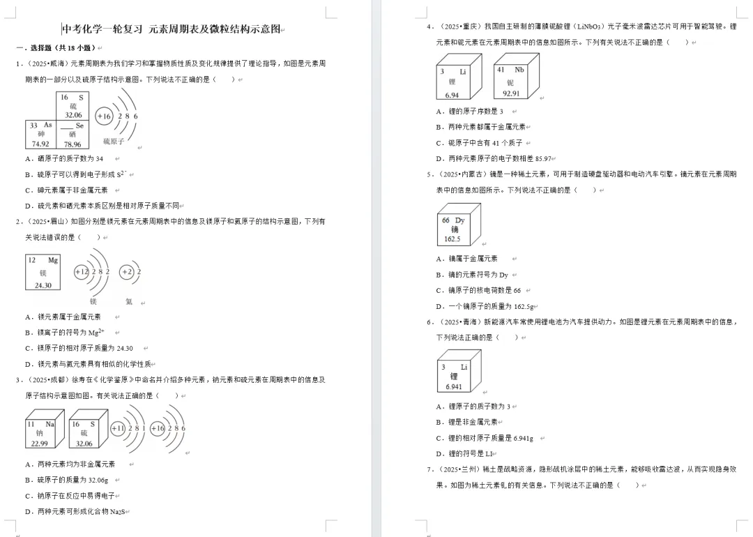 元素周期表及微粒结构示意图(含解析)