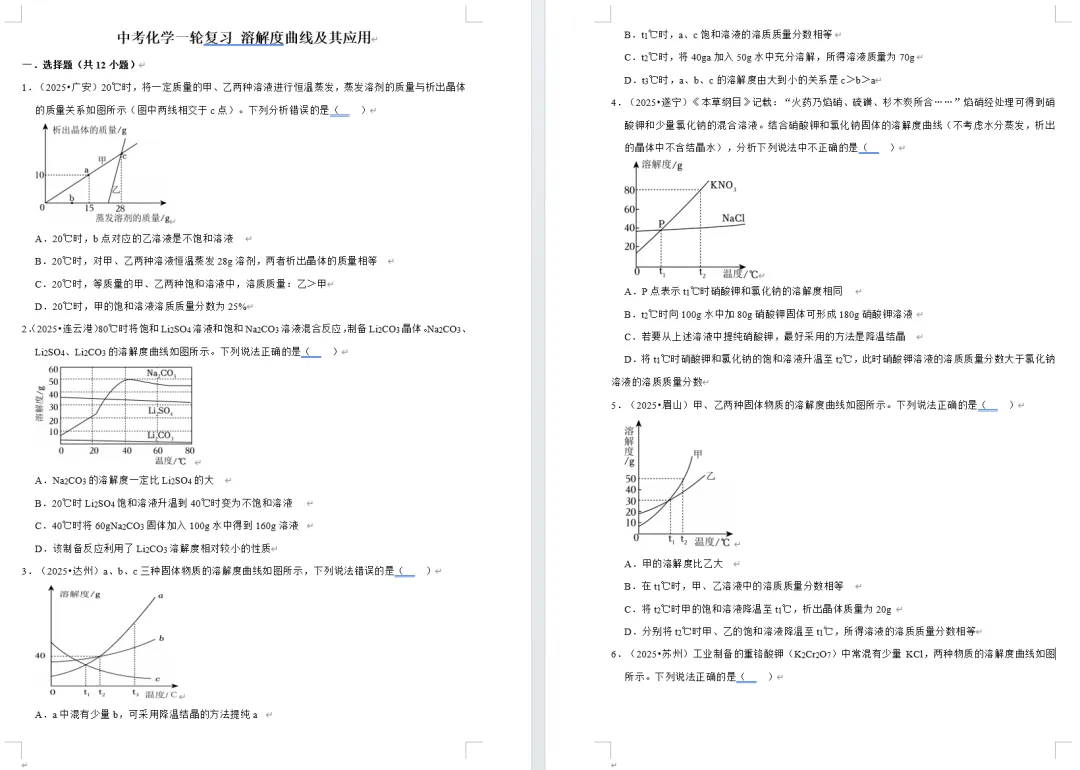 溶解度曲线及其应用(含解析)