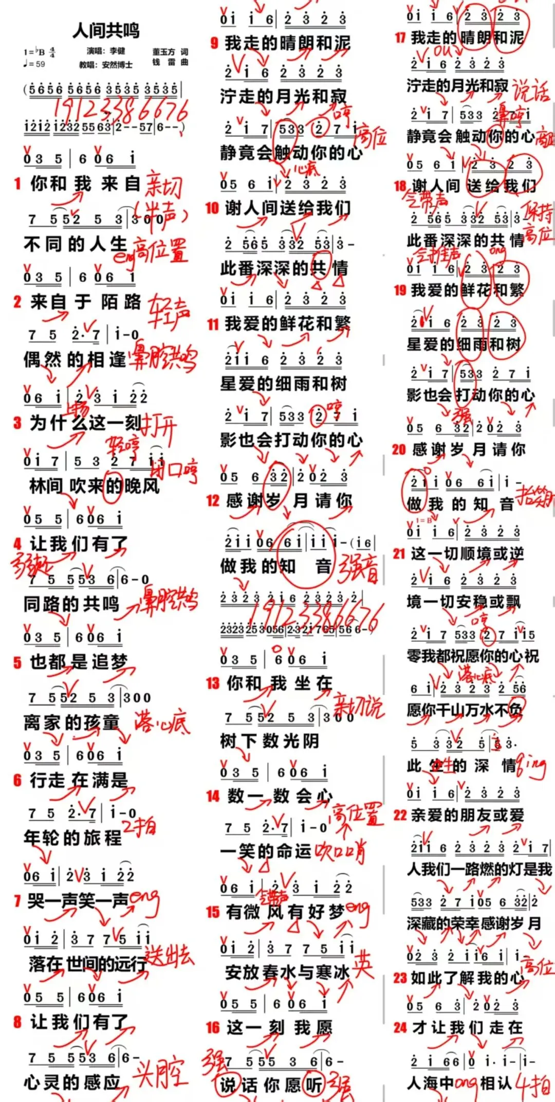 安然博士教唱歌《人间共鸣》复习资料