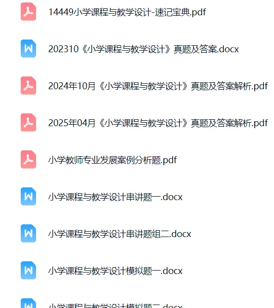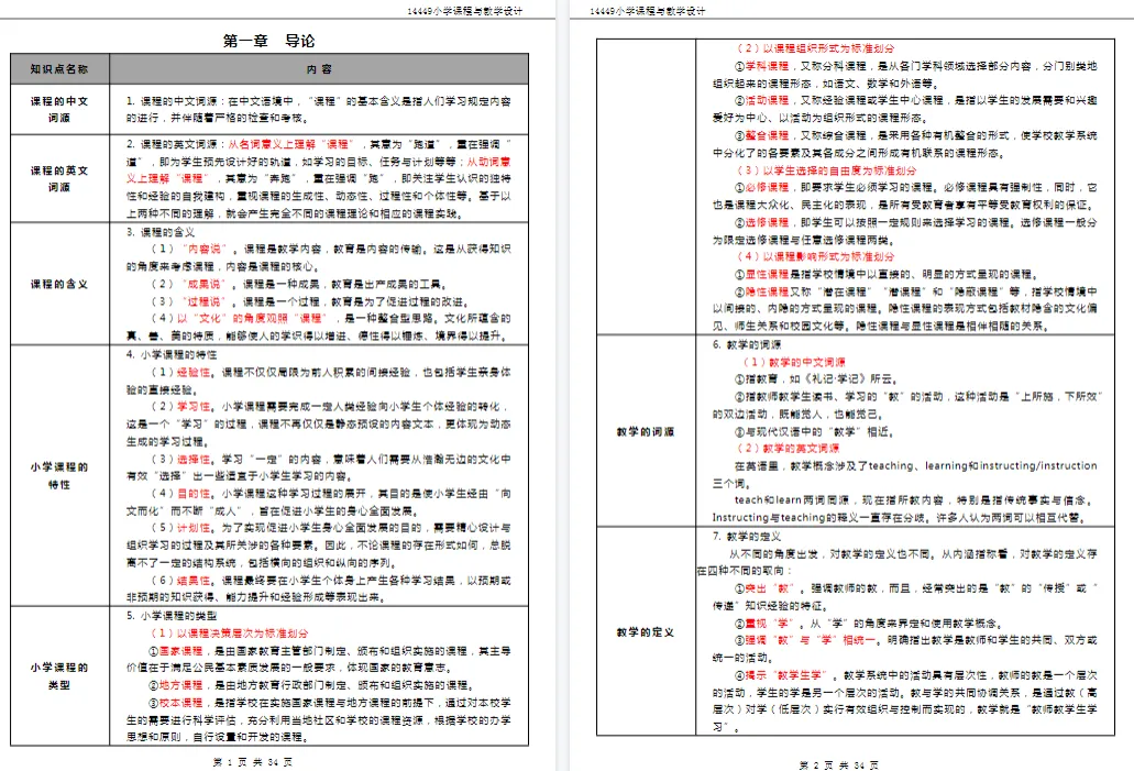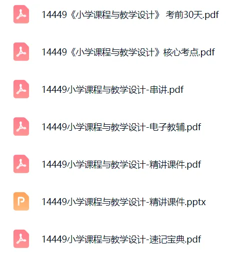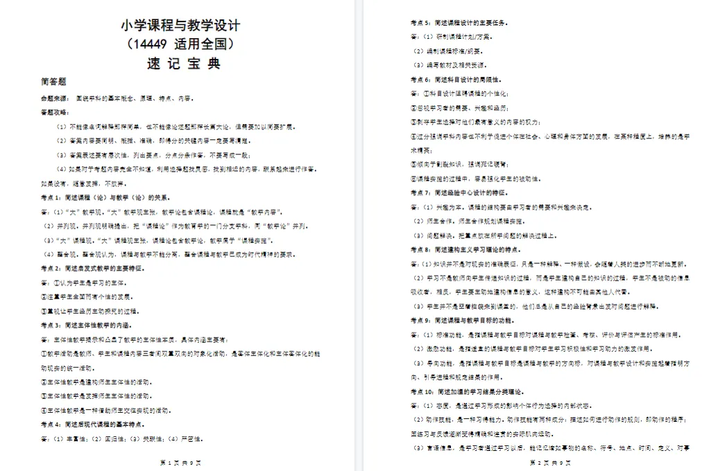 以上就是本次分享的14449《小学课程与教学设计》复习资料,由于篇幅原因,只做部分内容展示。