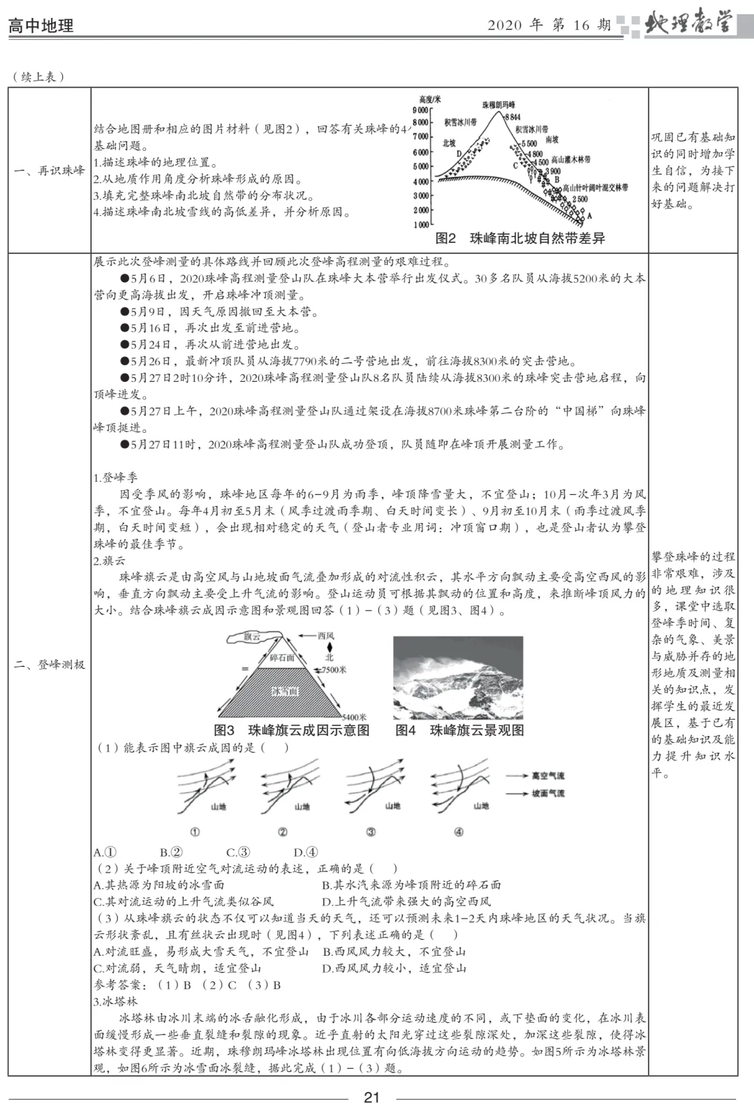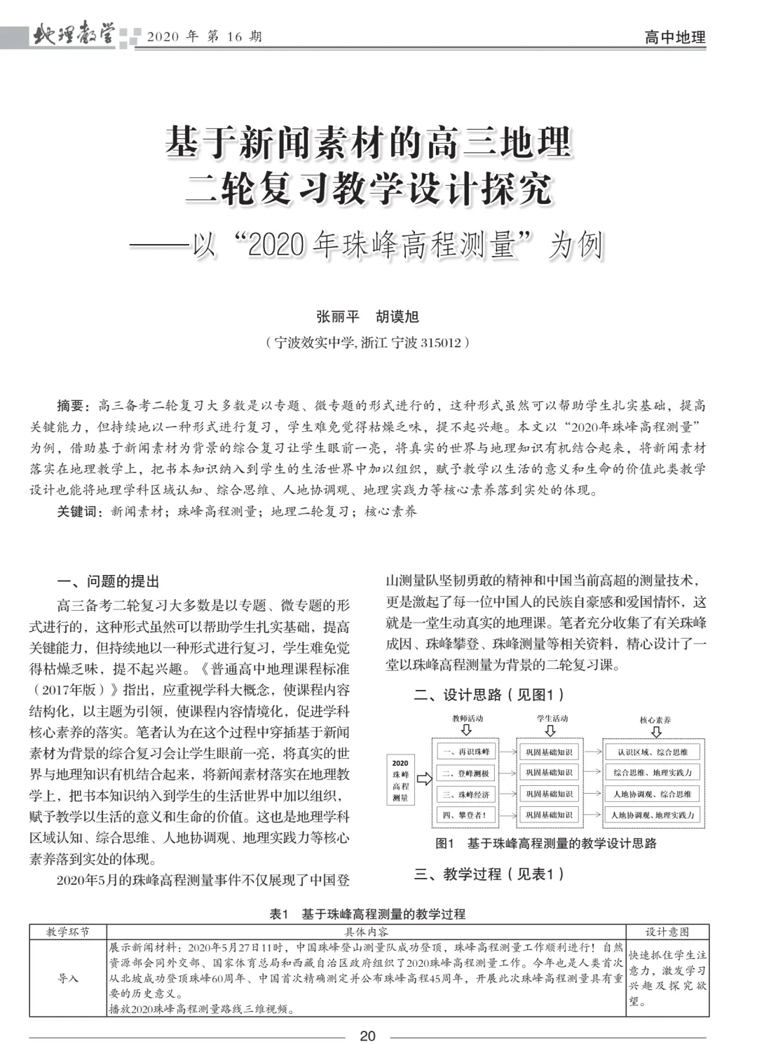 >基于新闻素材的高三地理二轮复习教学设计探究——以“2020年珠峰高程测量”为例_张丽平