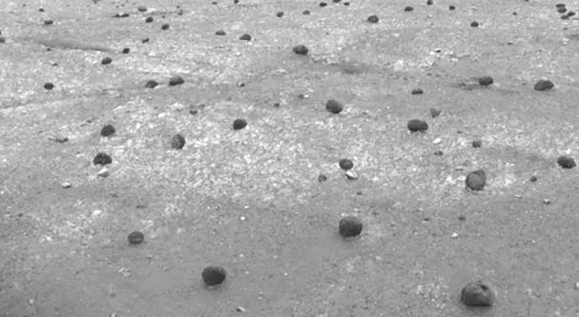 阿拉斯加某冰川前端(61.5°N,142.9°W附近)的冰面上,呈斑块状分布着少量的矿物质,并生长着一种苔藓球。这种苔藓球内部由生物体和有机残体交织,形成相对独立的生存环境。它们靠暖季在冰面上滚动方能维持生存,被形象地称为“冰川老鼠”。下图是冰面上的苔藓球照片。据此完成1~3题。
