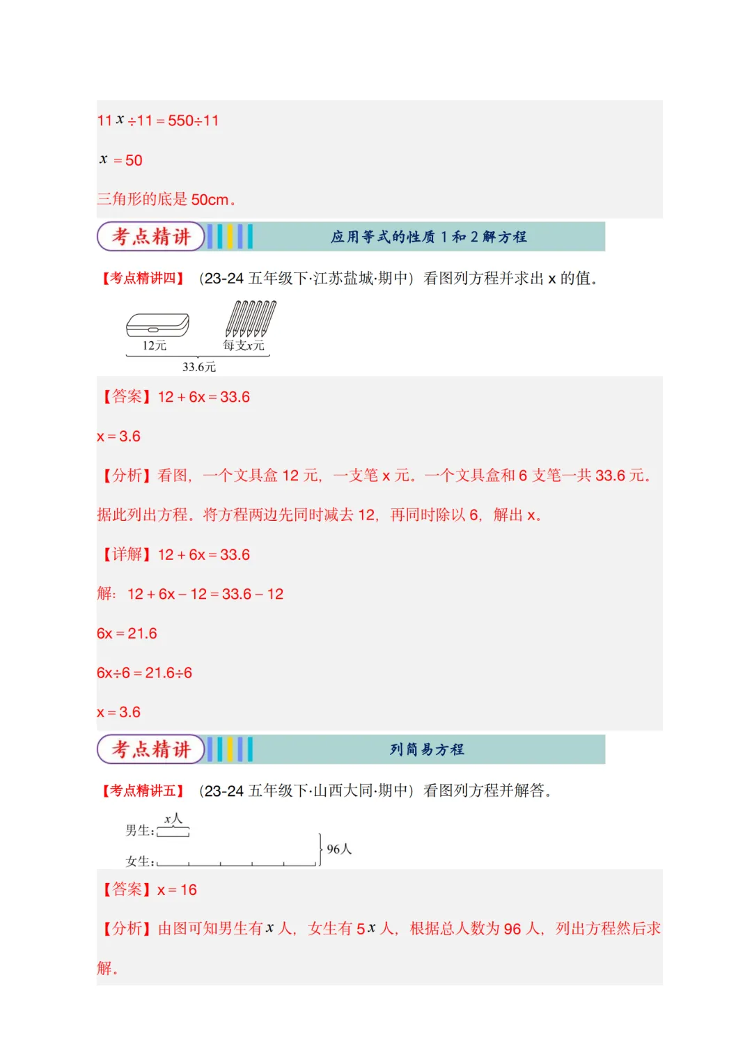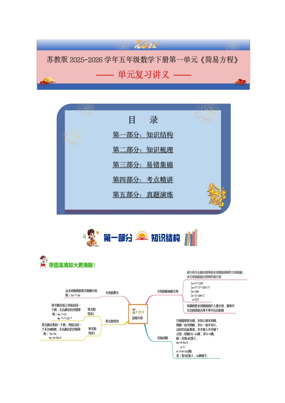 今天给大家准备好了,五年级下册数学(苏教版)第一单元《简易方程》(看图列式七大题型)单元复习讲义。建议分享到班级群/年级群,让家长打印出来,帮助孩子学习!