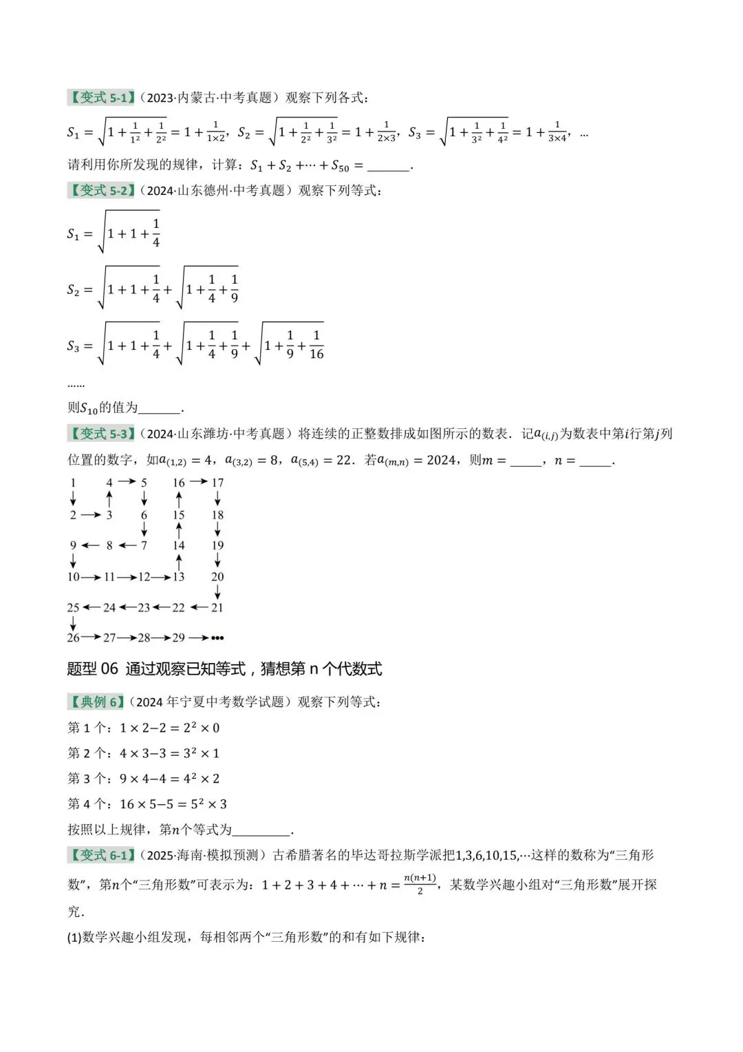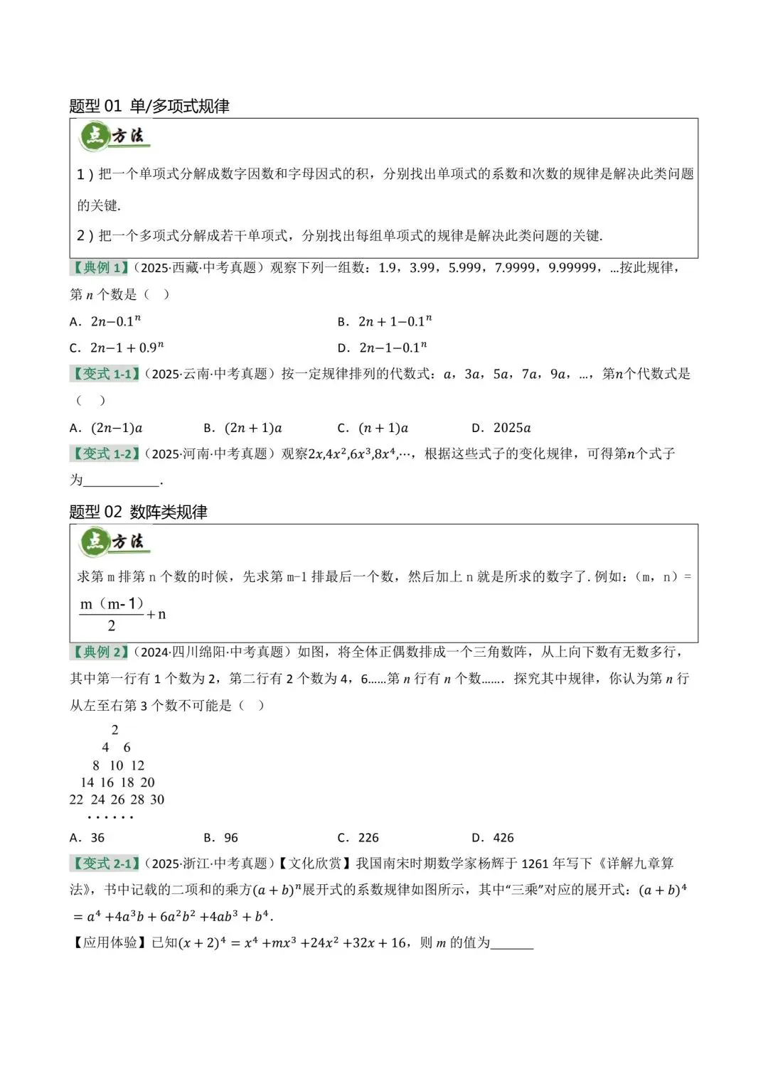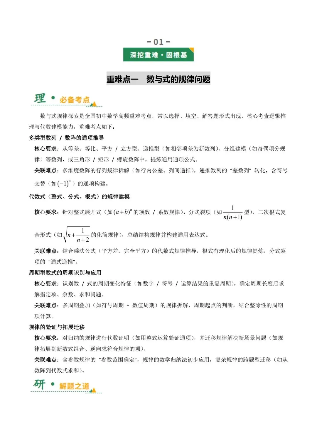 探究规律性问题中考数学复习资料