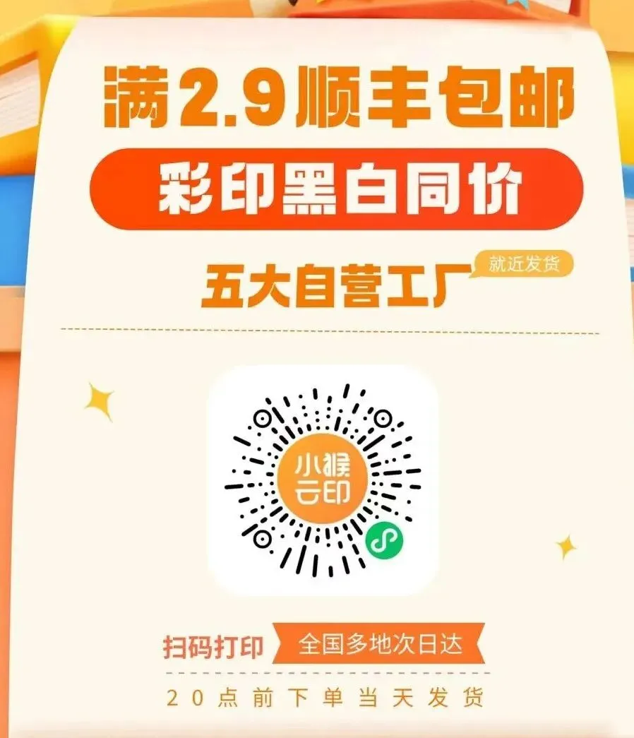 - 打印小程序:打印特惠来袭!每页低至0.05元,更有顺丰包邮服务,最高还能享受80页免费打印福利!👇👇👇