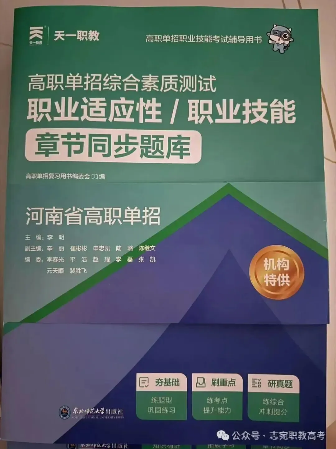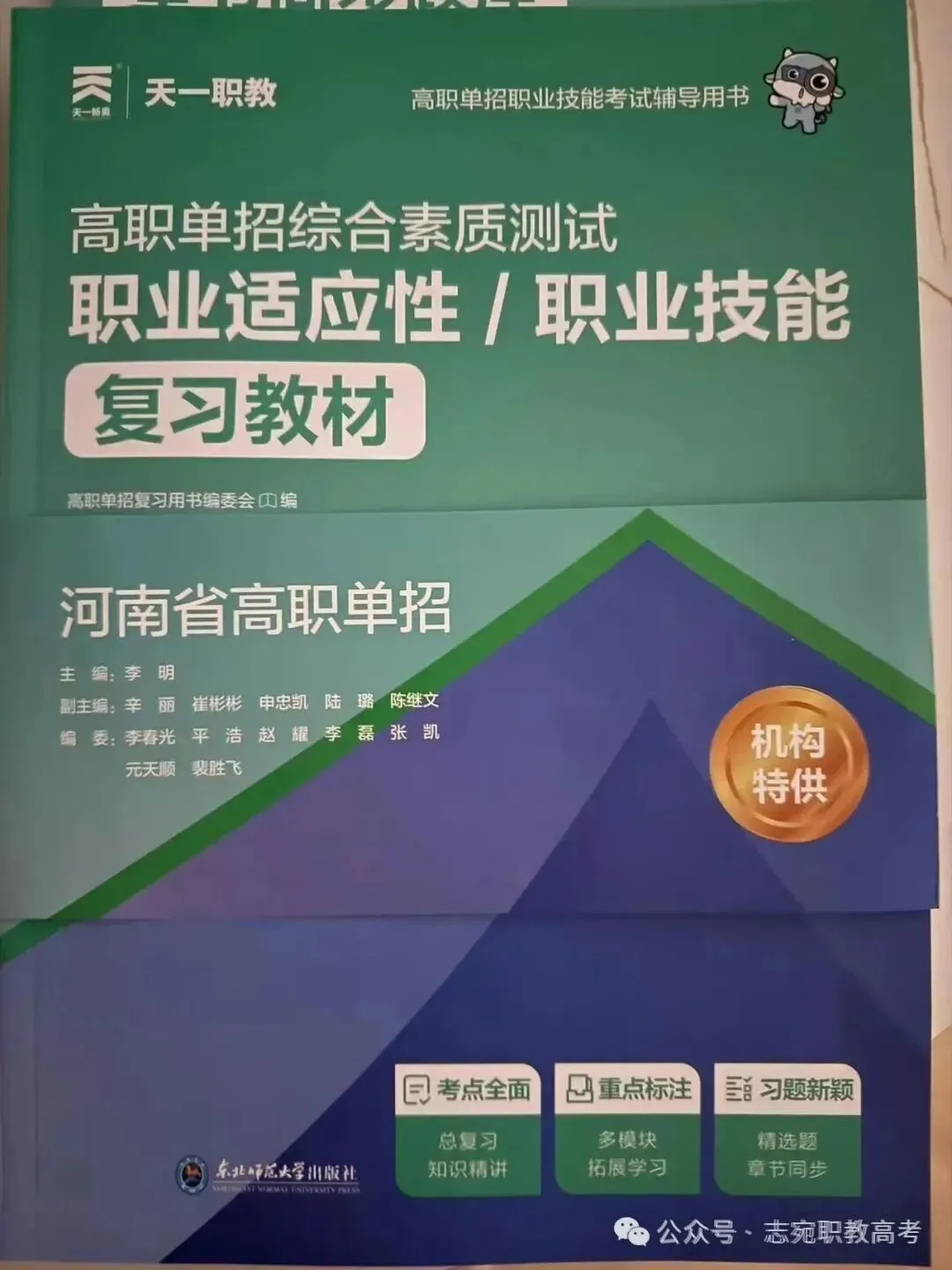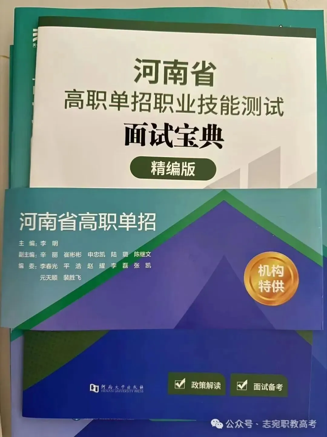 2026最新河南单招教材,各大院校参考出题,正版,送小程序刷题。职测教材、职测试卷,面试宝典,内容齐全,扫码购买。
