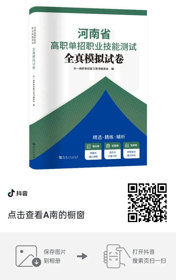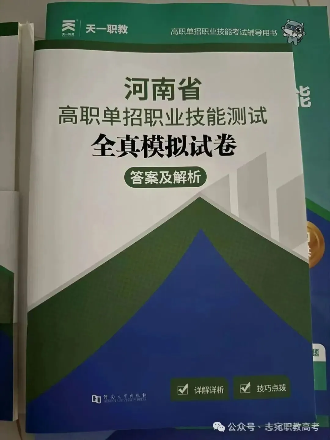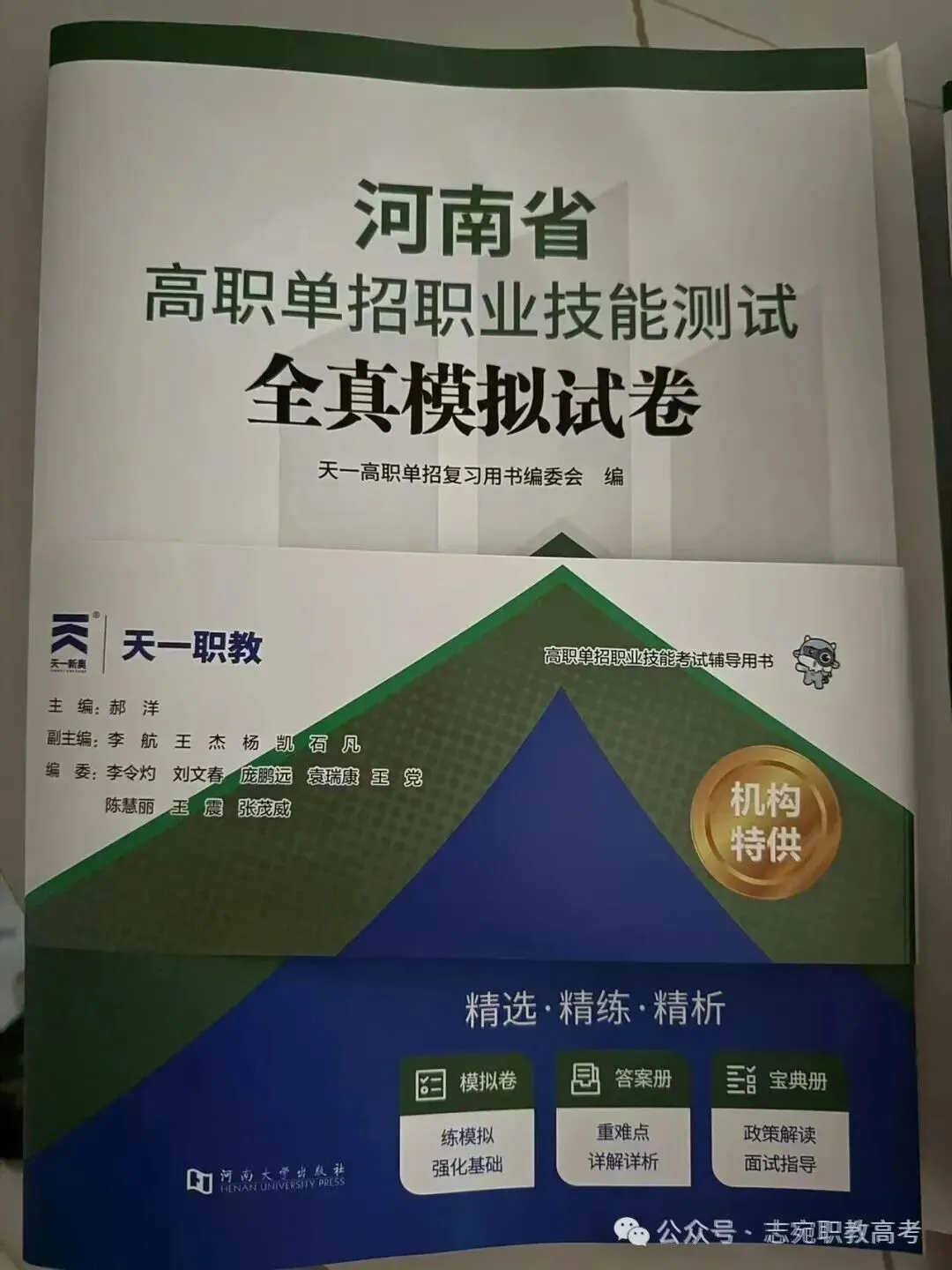 2026最新河南单招教材,各大院校参考出题,正版,送小程序刷题。职测教材、职测试卷,面试宝典,内容齐全,扫码购买。