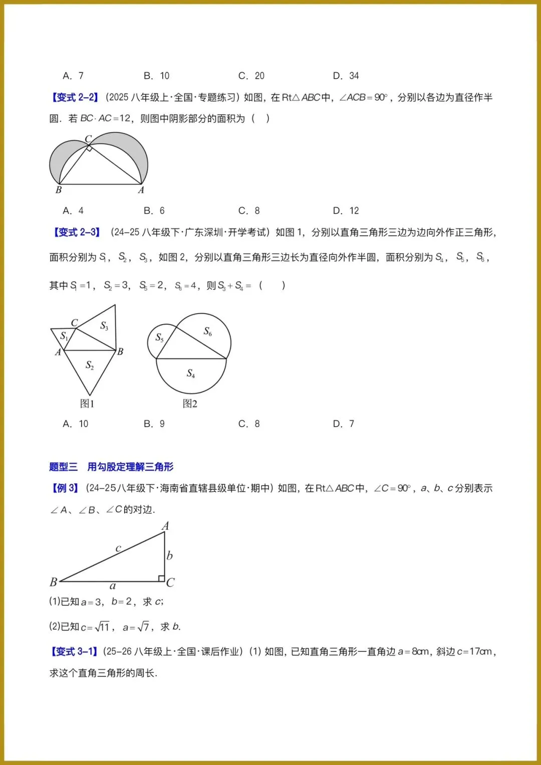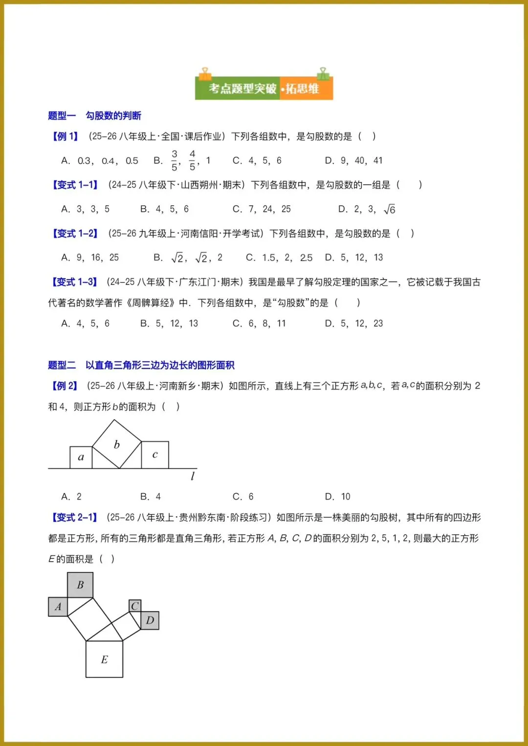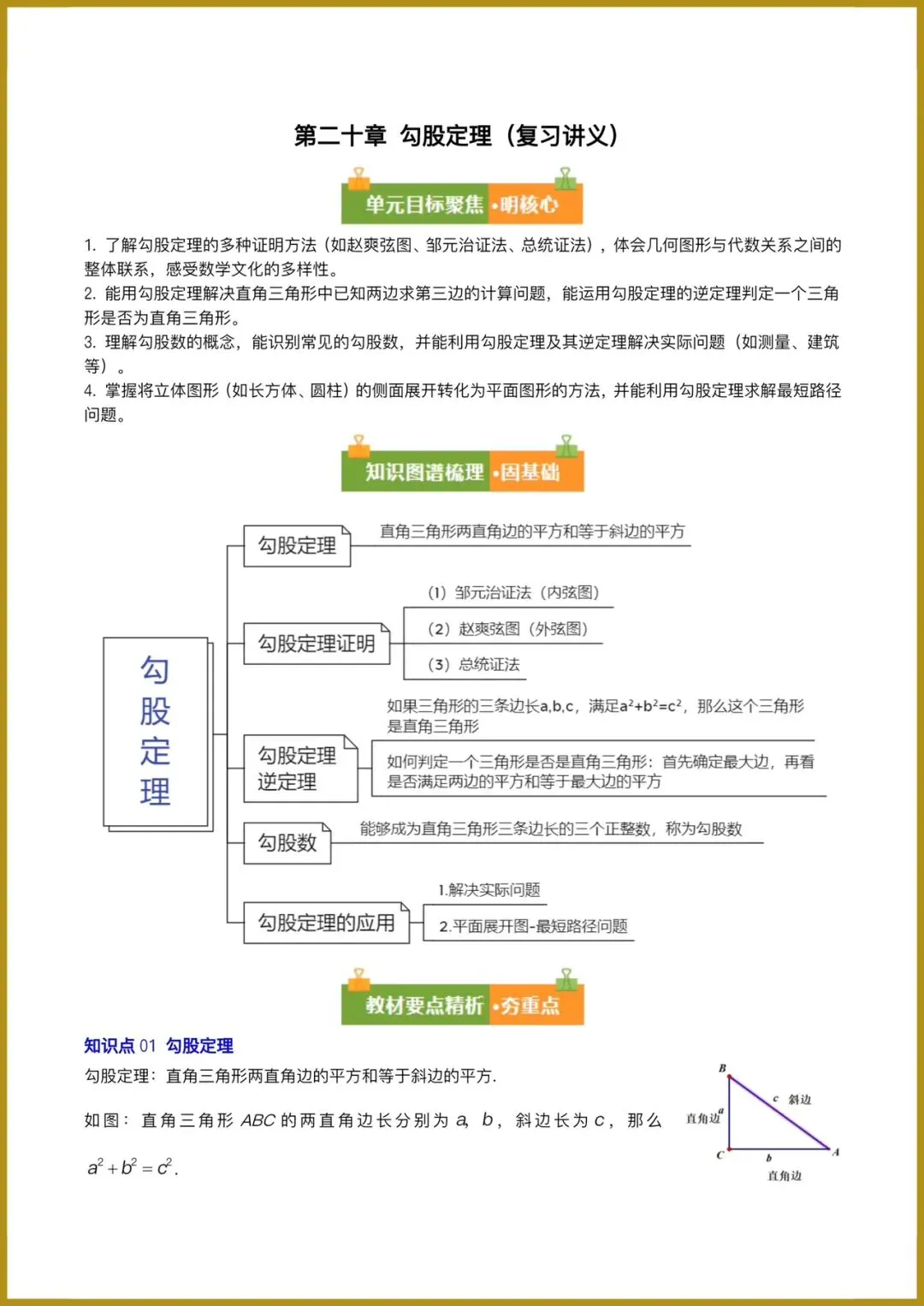 分日分享:2026春新人教版八年级下册《数学》复习讲义:勾股定理(必备知识 10题型 )(原卷版+解释版)+多套讲义。有完整电子版可打印!