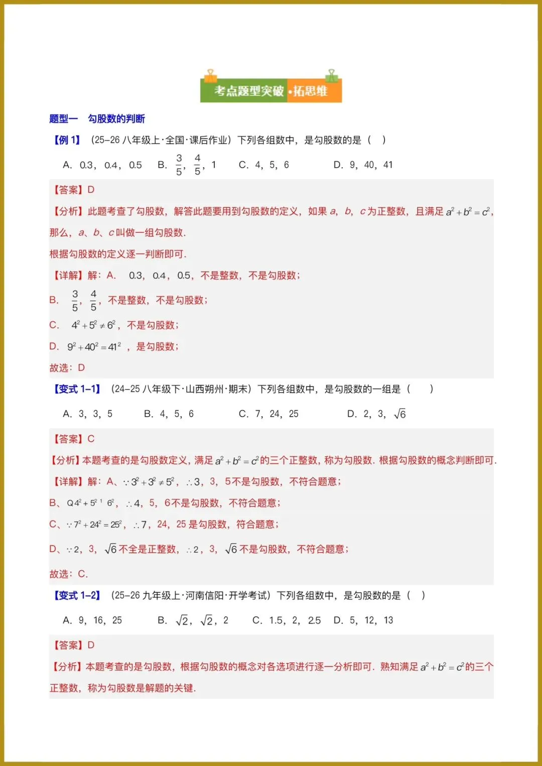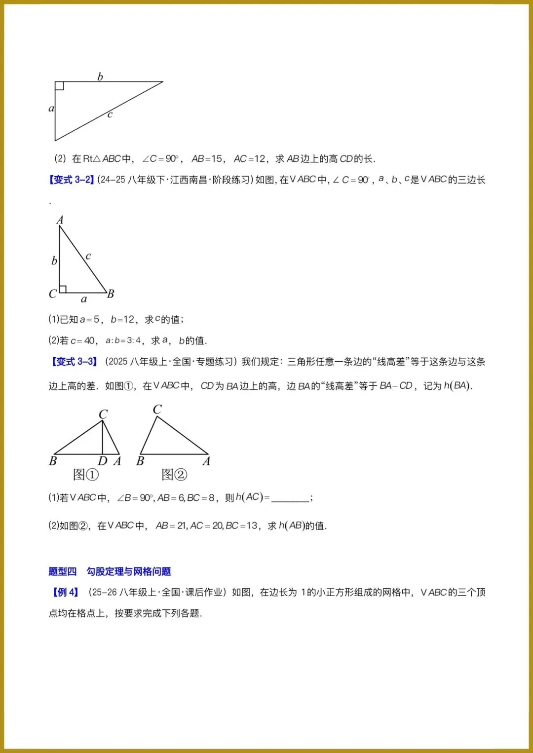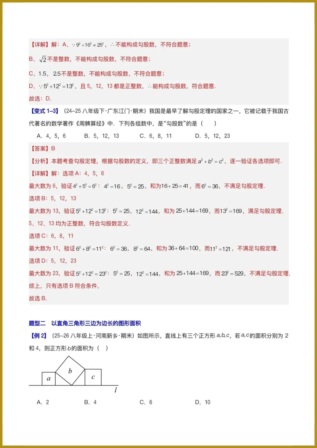 分日分享:2026春新人教版八年级下册《数学》复习讲义:勾股定理(必备知识 10题型 )(原卷版+解释版)+多套讲义。有完整电子版可打印!