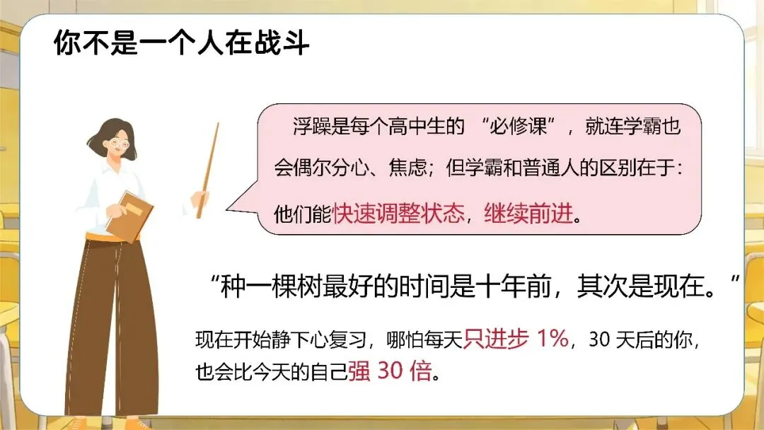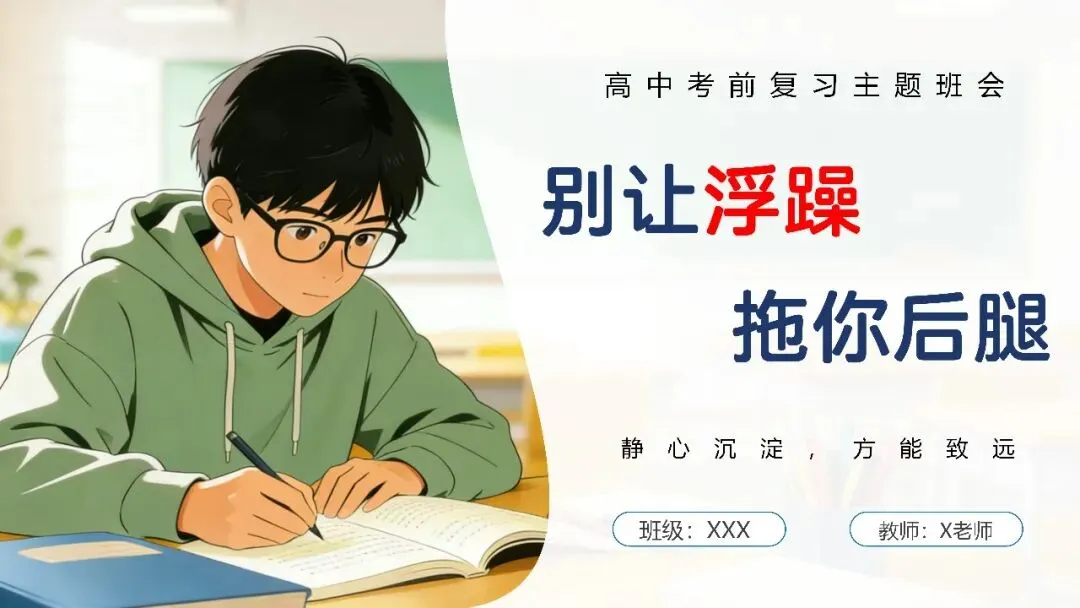 今天给大家推荐一份高中考前复习指导主题班会课件,共30页,可编辑修改,有配套教案+逐字稿。(编号C6064)