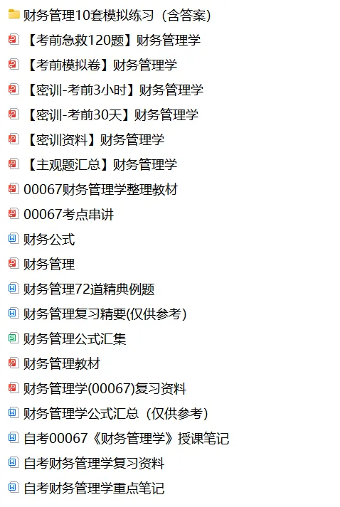 所以这期给大家带来的是自考00067《财务管理学》专业课的备考复习资料,这份资料不仅包含了复习重点笔记,还涵盖了历年真题库答案和知识点。