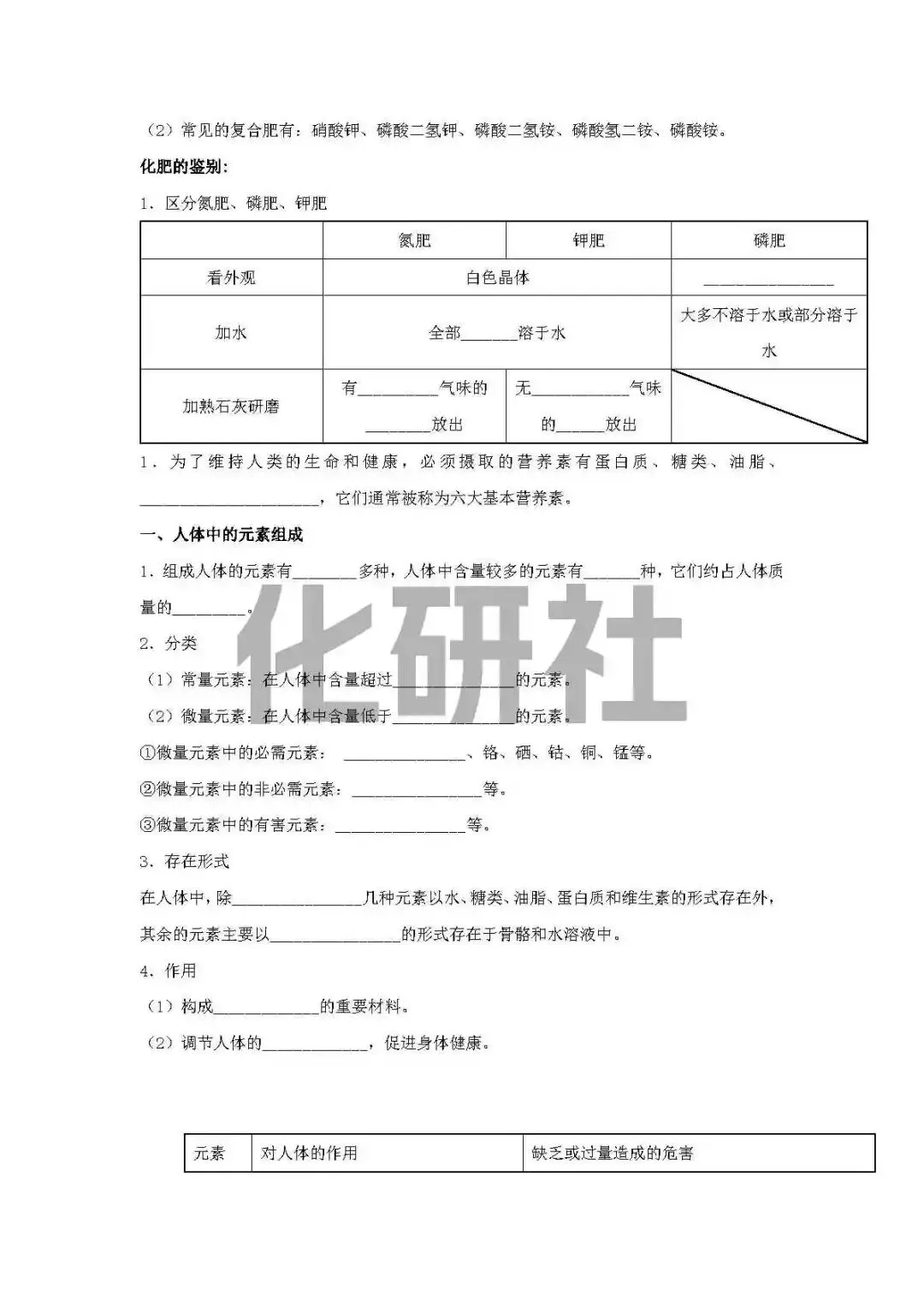 >【复习资料】人教版九年级化学下册默写