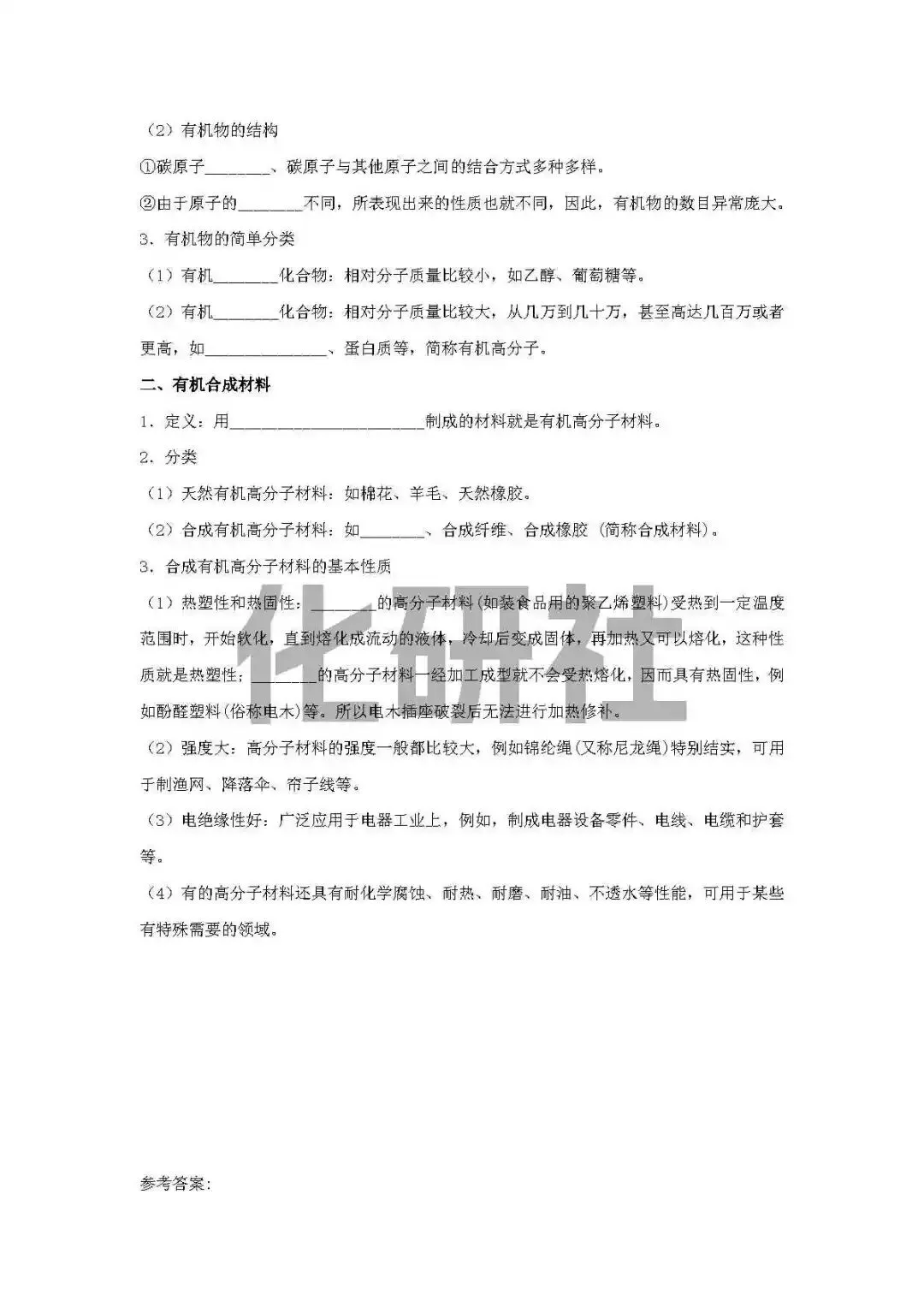 【复习资料】人教版九年级化学下册默写