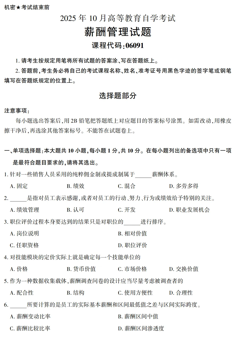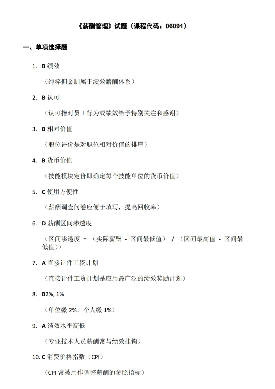 资料二:自考06091《薪酬管理》历年真题及答案【更新至2510】