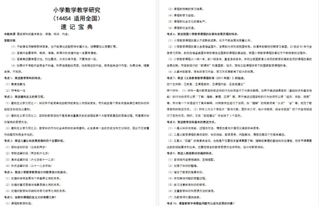 以上就是本次分享的14454《小学数学教学研究》复习资料,由于篇幅原因,只做部分内容展示。