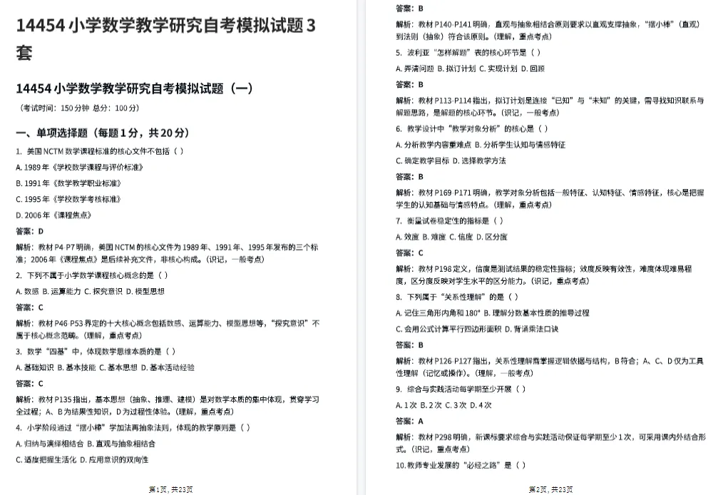 无论你是备考初期需要夯实基础、搭建知识框架,还是冲刺阶段想要借助真题提升应试能力,亦或是被某一难点困住难以突破,这份资料都能精准匹配你的需求。对于正为14454《小学数学教学研究》全力奋战的自考考生来说,这样一份直击复习核心、助力高效提分的资料,无疑是不容错过的备考利器。