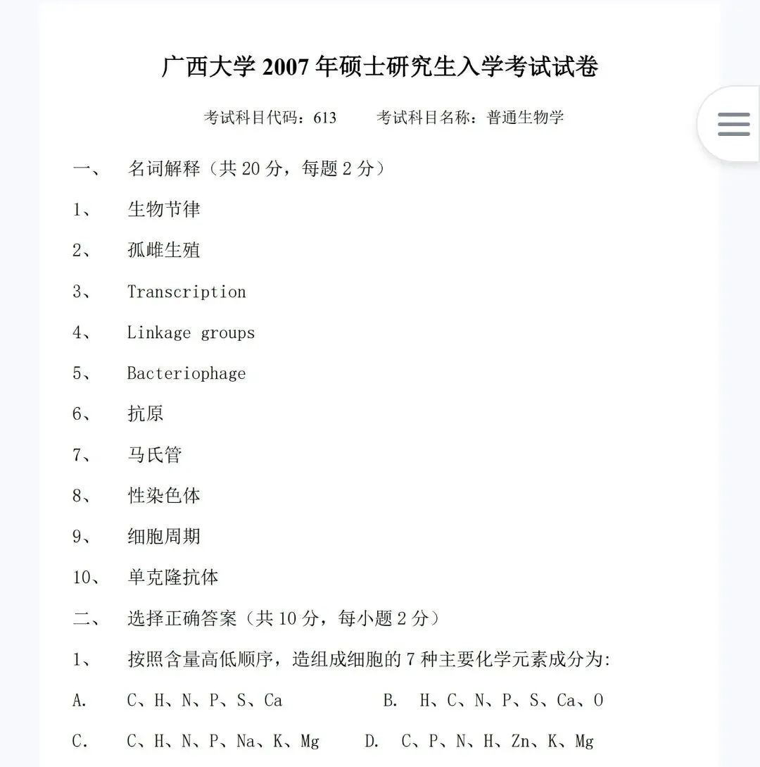 广西大学894普通生物学真题+复习资料包考研资料,助力上岸