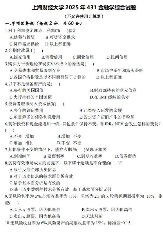 PS:赠送26上财431真题电子版--计算题及论述题部分,后续补充选择题。