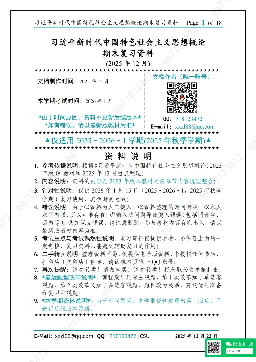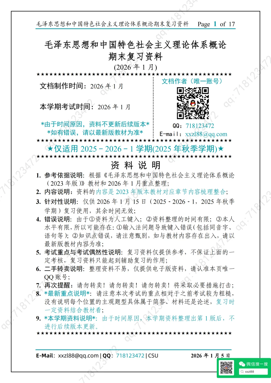 6.二手转卖说明:整理资料不易,仅提供电子版资料,未授权任何书店、打印店(文印店)售卖,请认准本页唯一QQ账号;