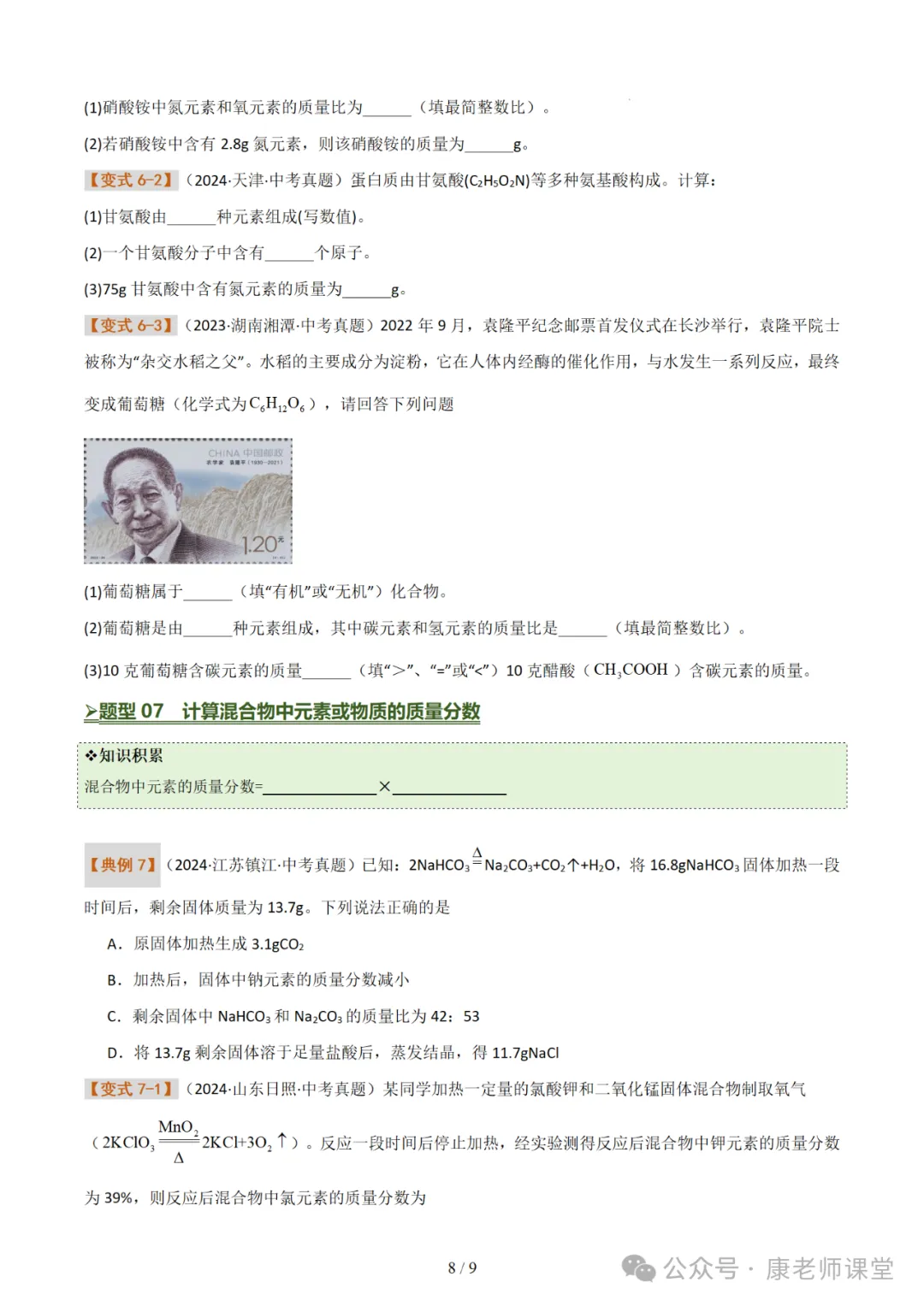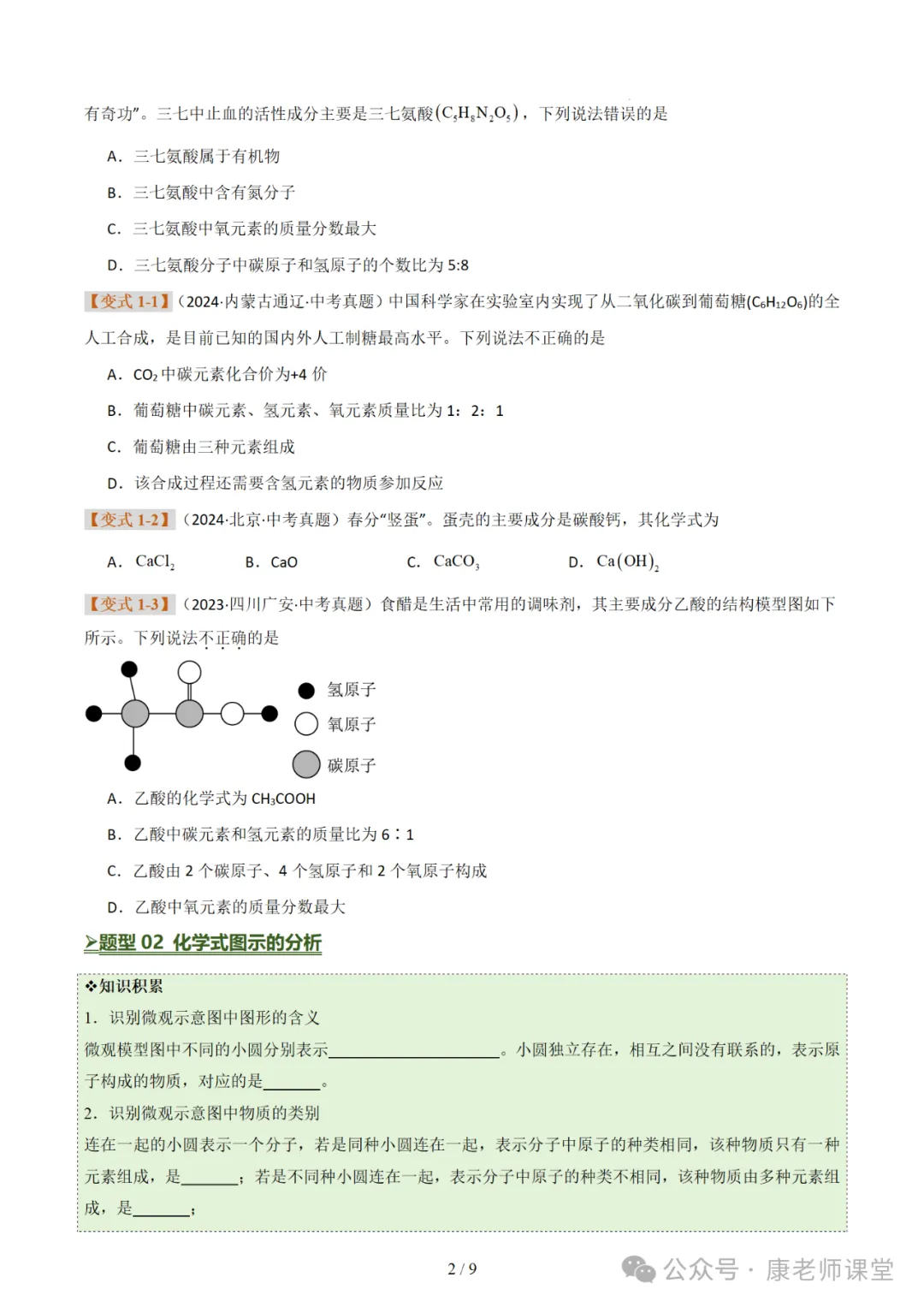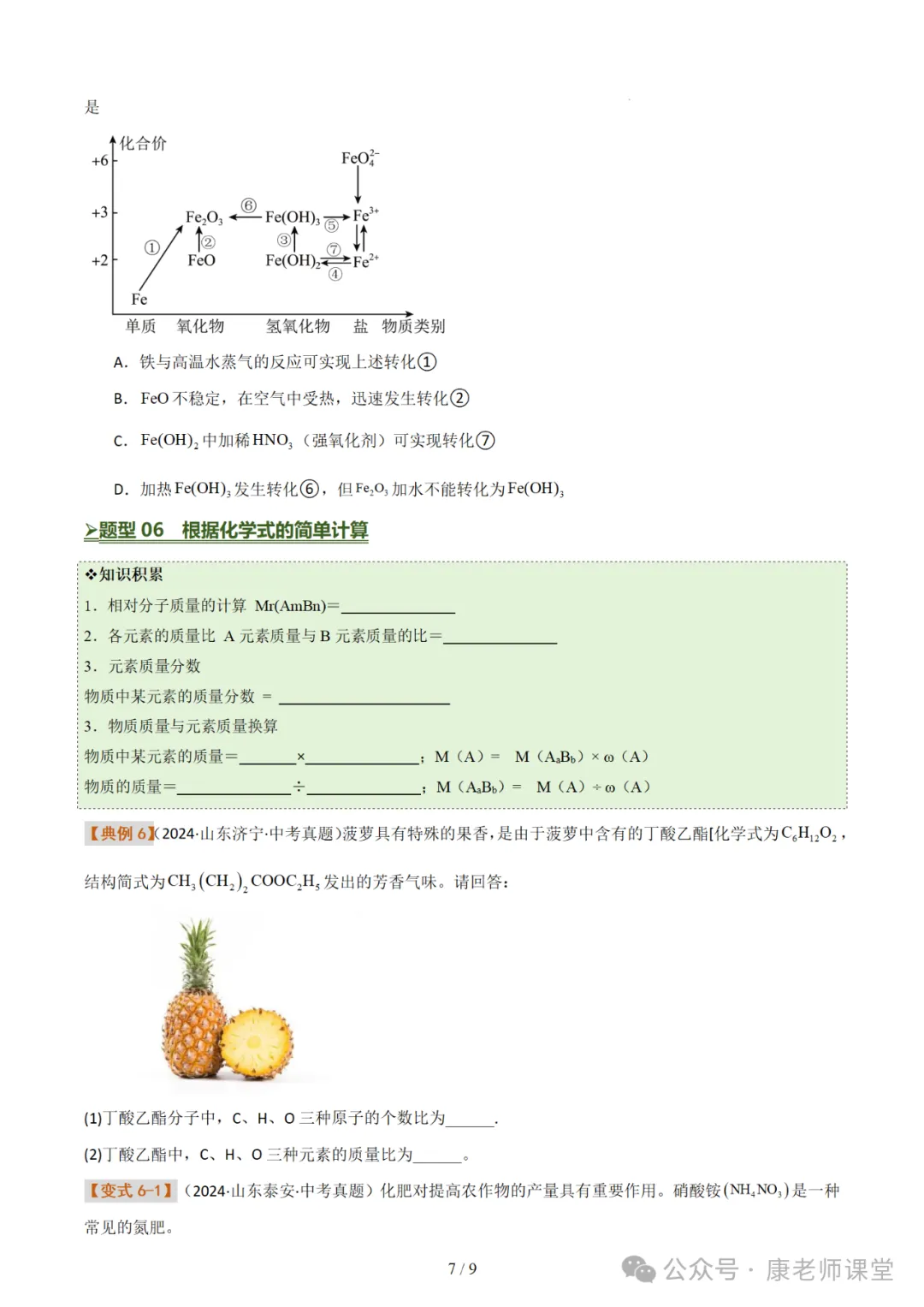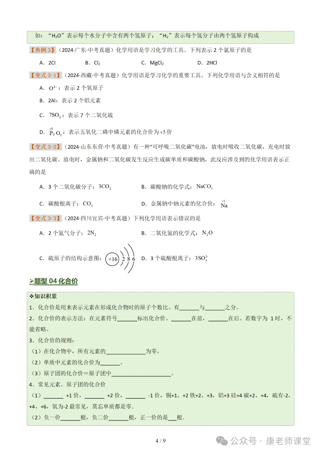 化学式与化合价 化学用语(七大题型)