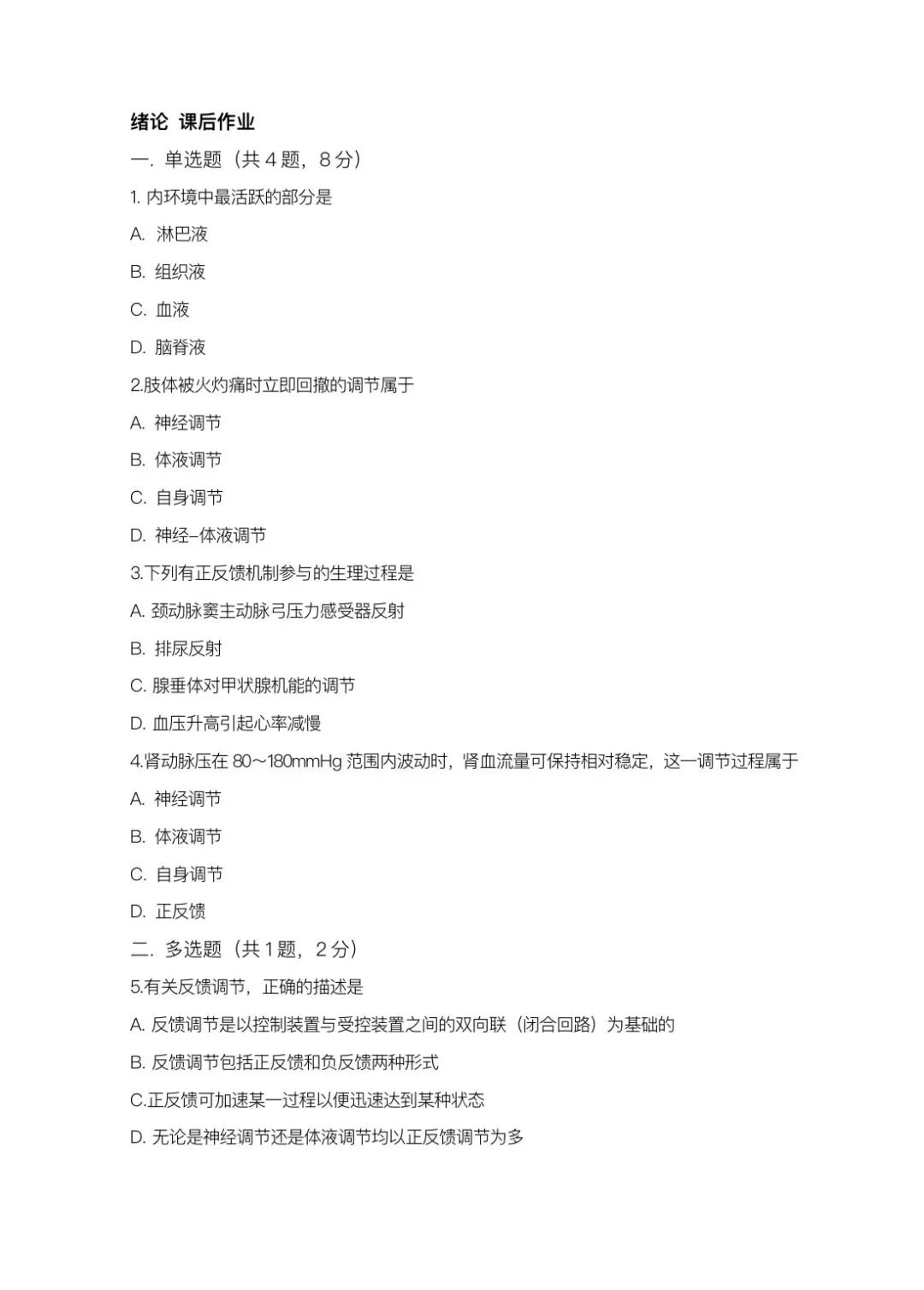 生理学习题(绿皮书题)